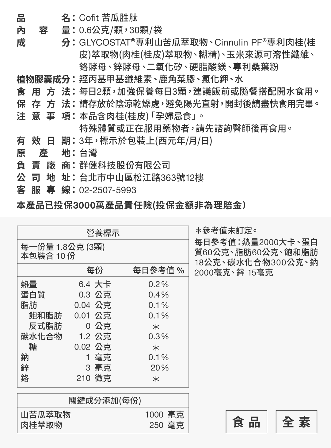 商品名: Cofit 苦瓜胜肽