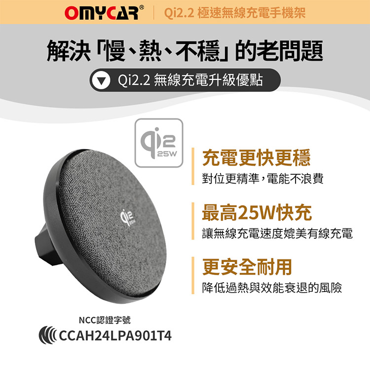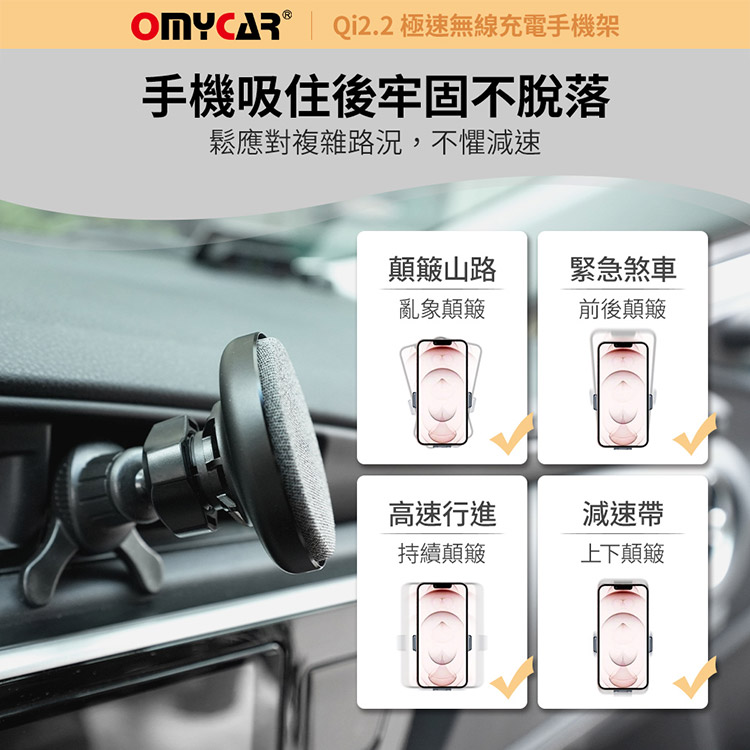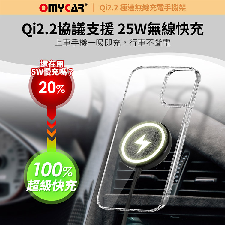 【OMyCar】Qi2.2 極速無線充電手機架(送-冷氣口支架)