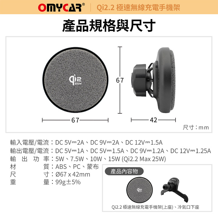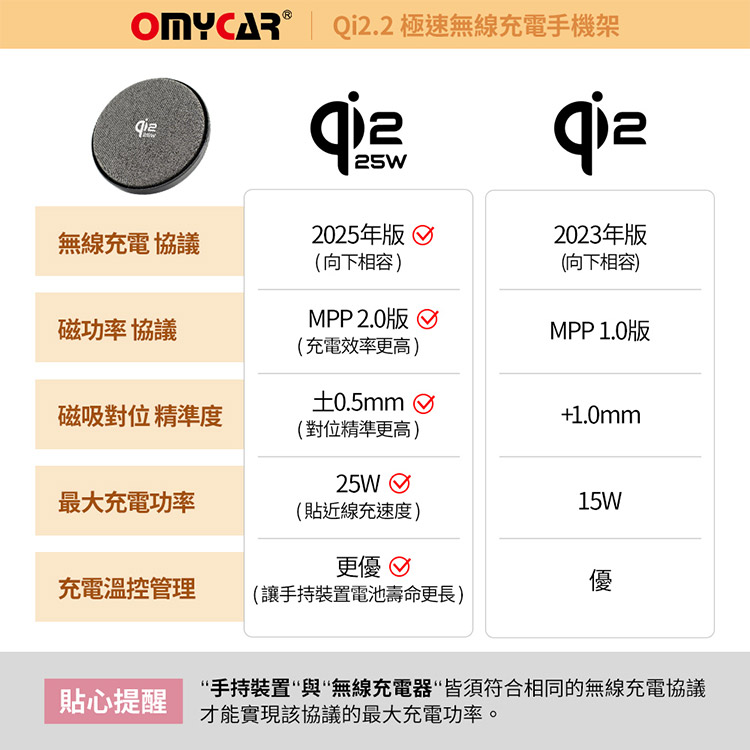 輸出功率:5W、7.5W、10W、15W (Qi2.2 Max 25W)