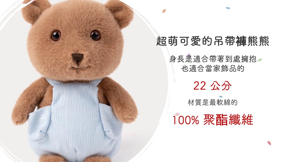 北歐休閒穿搭: 吊帶褲設計簡約,展現了低調的時髦感,讓這隻熊熊成為你家中提升品味的獨特擺件,彰顯你對細節的追求。