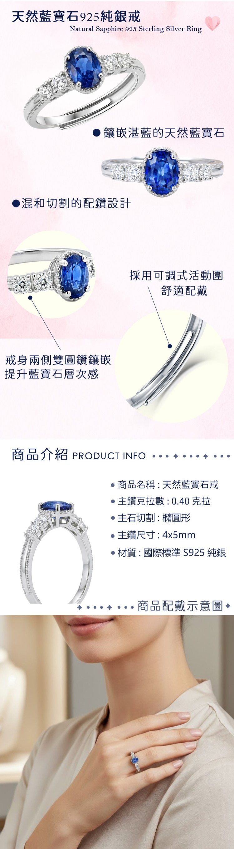 材質:天然藍寶石 / 925純銀
