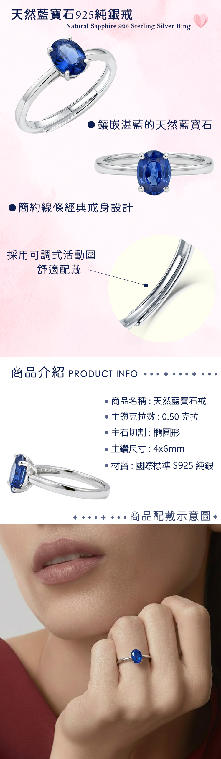 名稱:《藍境誓約》天然藍寶石50分女戒