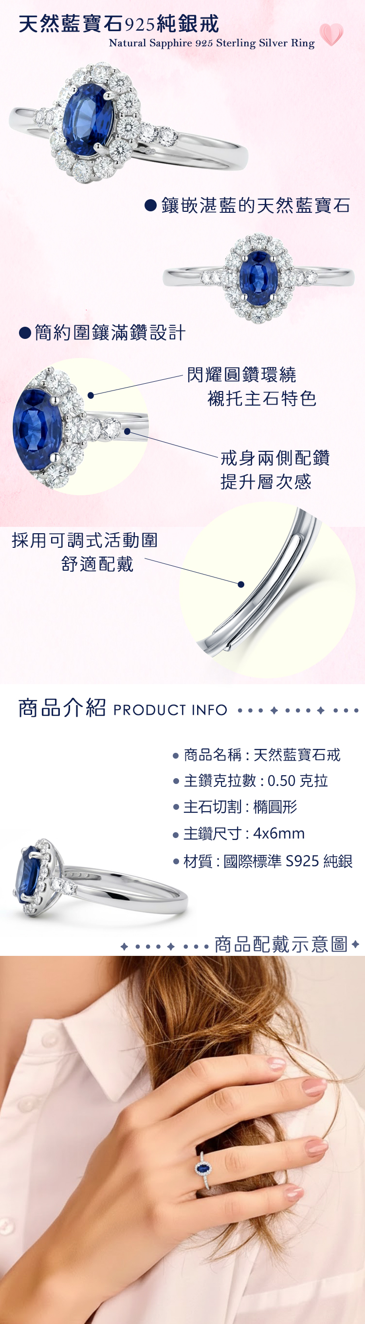 材質:天然藍寶石 / 925純銀