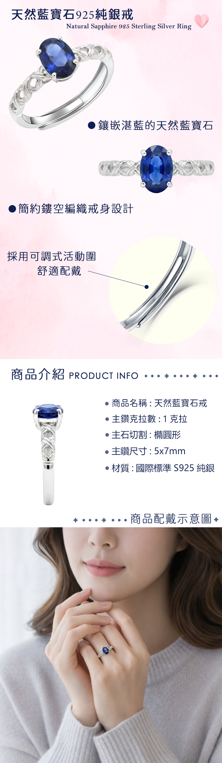 名稱:《永恆交織》天然藍寶石1克拉女戒