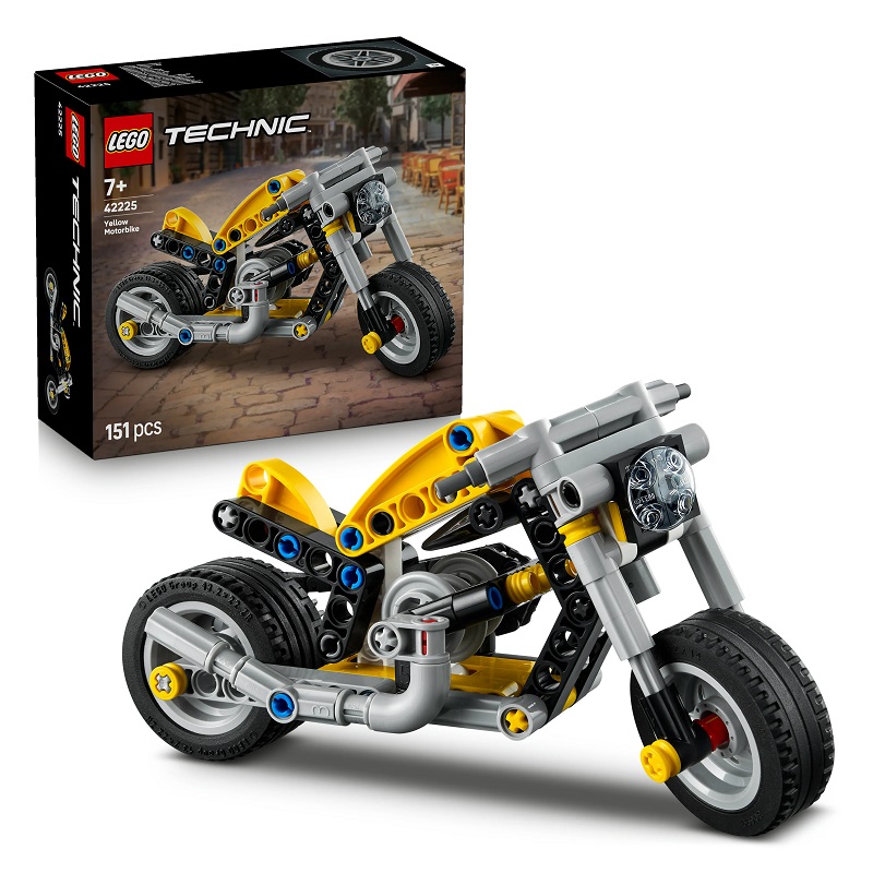LEGO 樂高 科技系列 黃色摩托車(42225),可激發歡樂無限的遊戲時光,適合 7 歲以上,喜愛車輛玩具的男孩與女孩此摩托車玩具配備轉向系統,以及透過鏈條連接後輪的三活塞引擎讓孩子查看摩托車不同部位的運作原理,帶領他們深入瞭解工程概念,同時培養新的 STEM 技能讓孩子拼砌、探索與遊玩此摩托車模型組合,激發他們的想像力尺寸-這款 151 片裝的組合包含高逾 8 公分、長逾 16 公分、寬逾 6 公分的摩托車模型