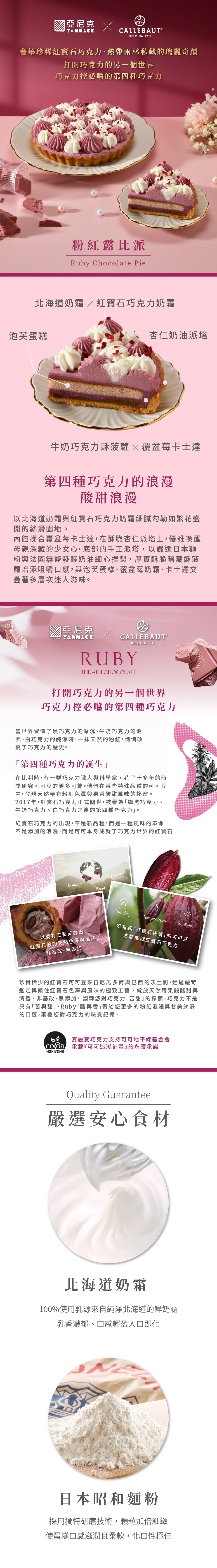 品名:粉紅露比派主要內容物:北海道奶霜/紅寶石巧克力奶霜/覆盆莓卡士達/泡芙蛋糕/牛奶巧克力酥菠蘿/杏仁奶油派皮葷素:奶蛋素規格:6吋/盒保存期限:冷藏2~3天內食用完畢,實際保存期限請見包裝標示