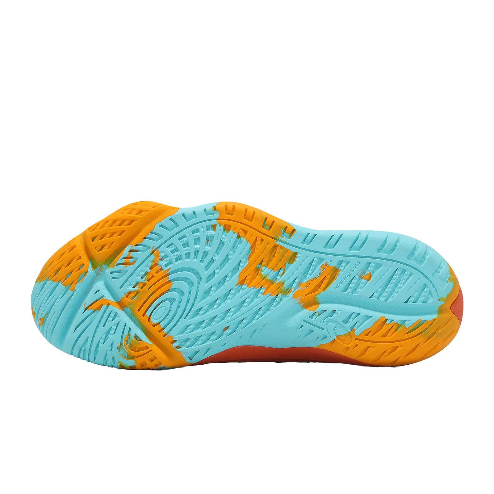 * NC RUBBER 橡膠大底,搭配前後掌特殊設計(前掌:加寬大底與 X GUIDANCE 溝槽、後跟:分離式設計),兼顧整體抓地與穩定性,更提升多向推蹬的靈活度。