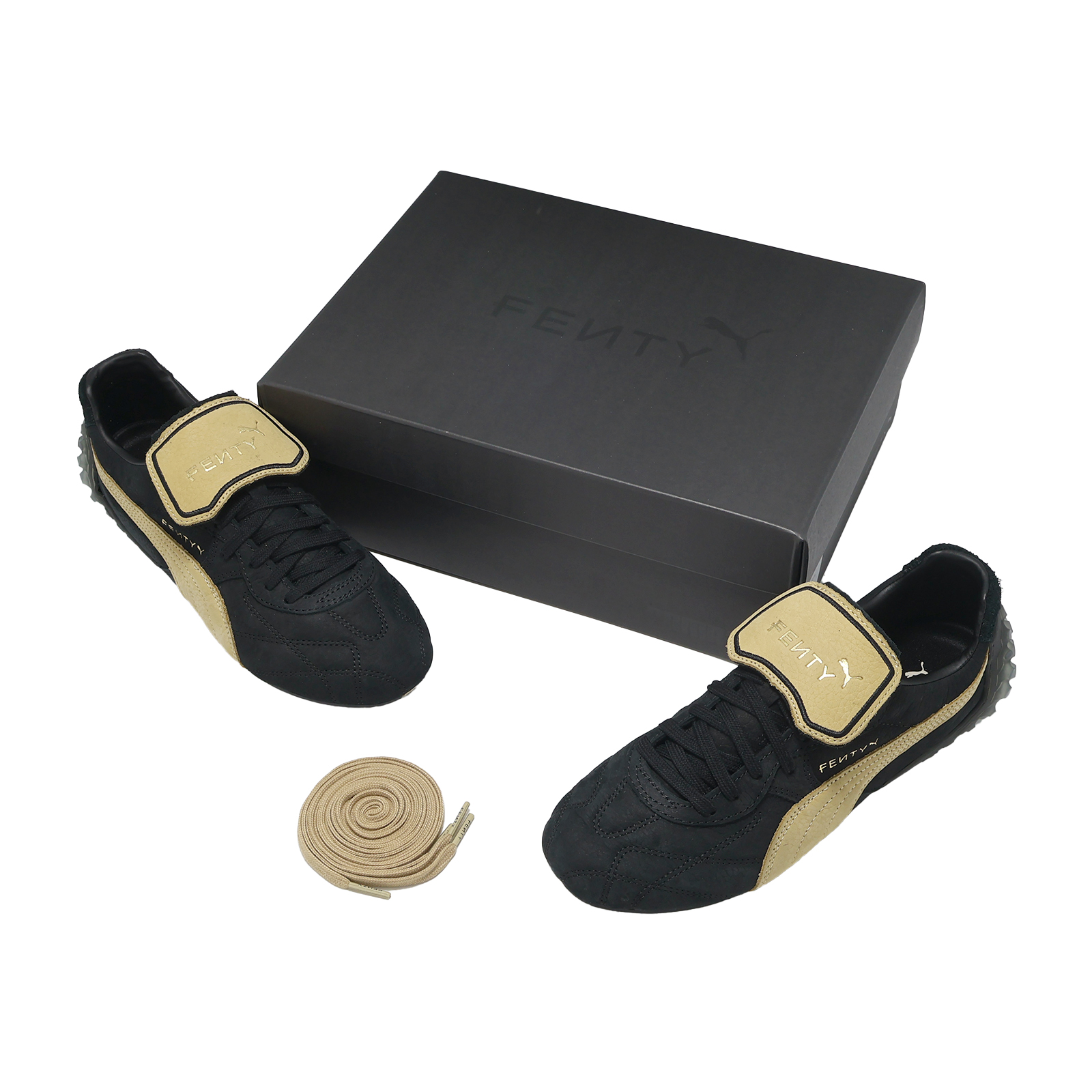 * 折疊的鞋舌上飾有燙金 FENTY 字樣和 PUMA 美洲獅 Logo。