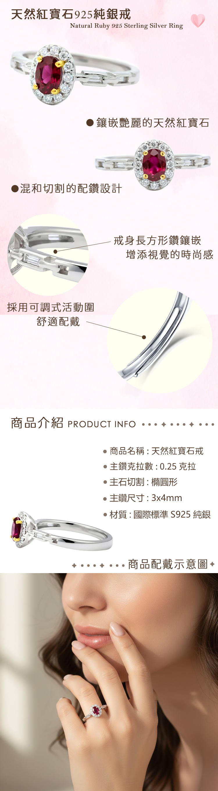 材質:天然紅寶石 / 925純銀