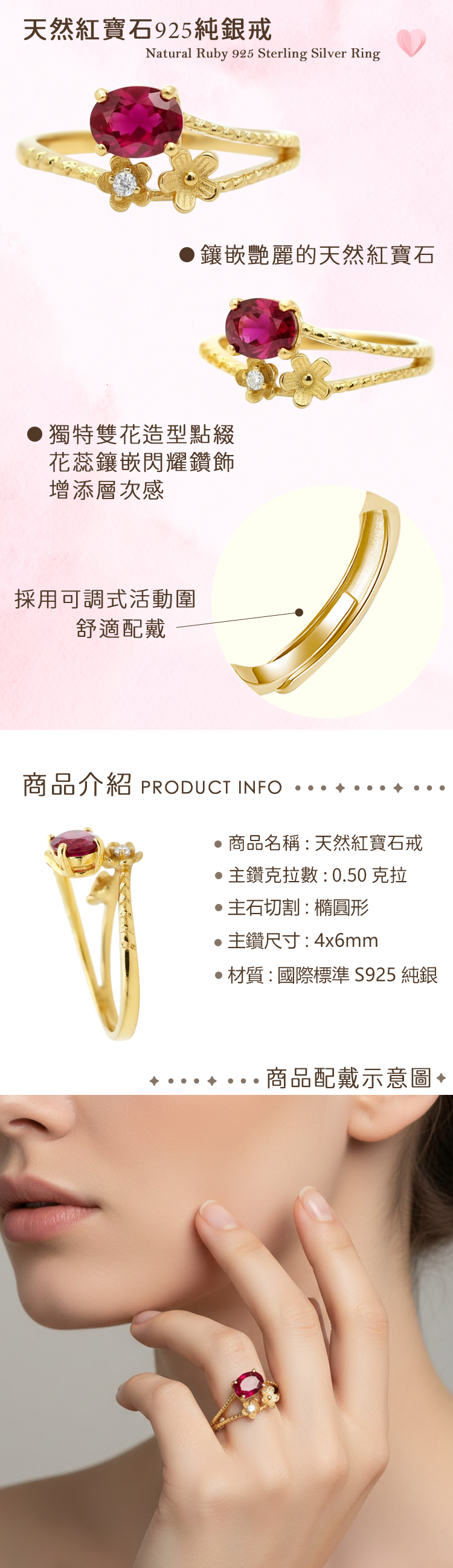 名稱:《緋紅金花》天然紅寶石50分女戒