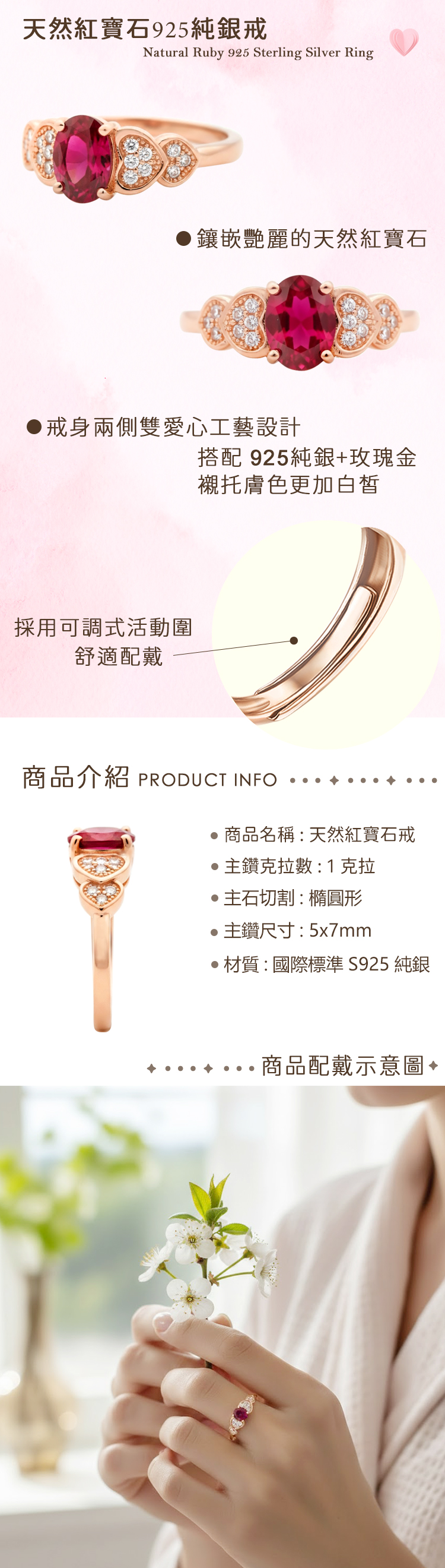 材質:天然紅寶石 / 925純銀