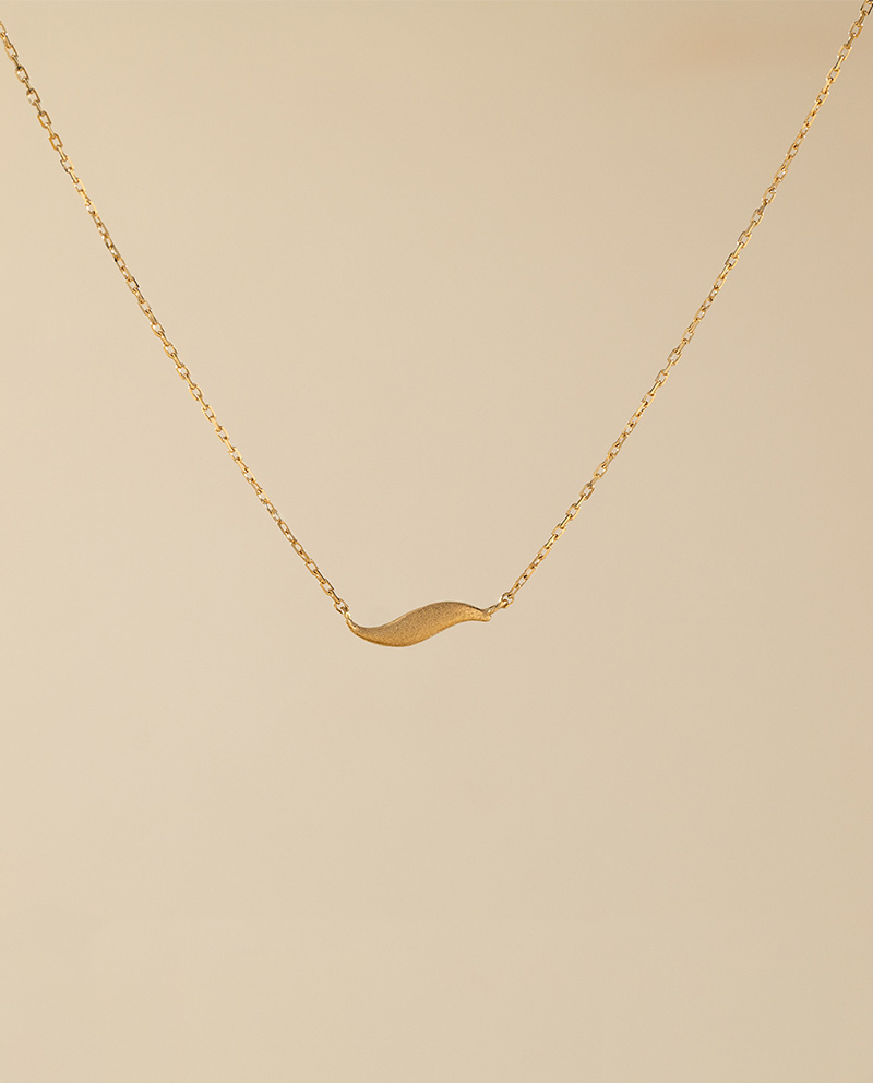 弧線為完整金體結構,非薄片壓製,線條厚度由一端微微收窄至另一端,形成自然的流動比例/金面採用細緻霧化處理,呈現低調柔光,而非高拋亮面。質感近似絲絨表面,顯出內斂高級感