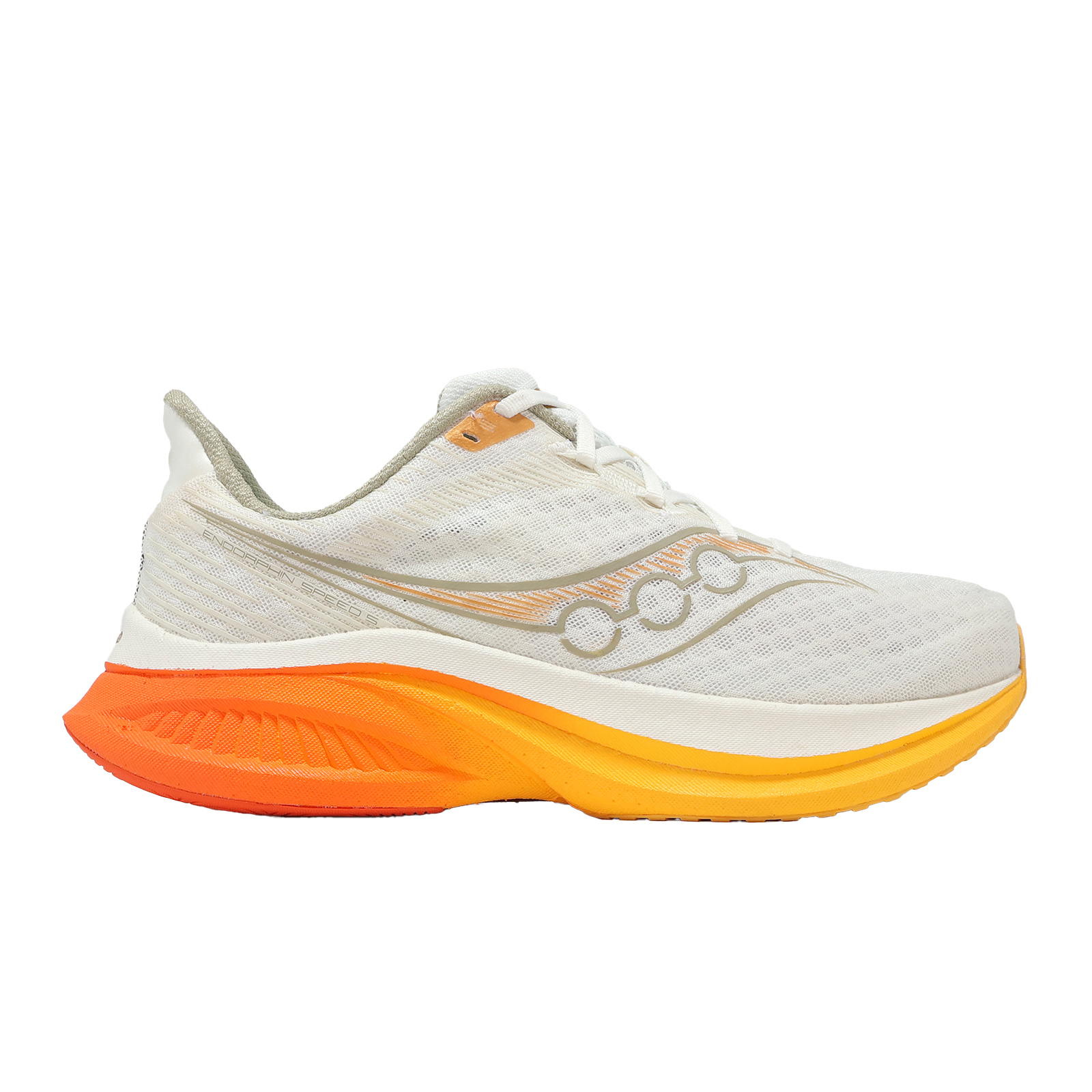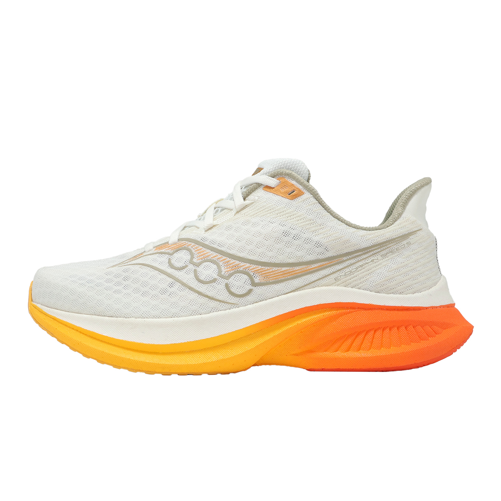 品牌: SAUCONY型號: S21008142品名: Endorphin Speed 5 Wide版型: 版型正常* 全新設計的尼龍底板搭配靈敏的 PWRRUN PB 緩震系統,帶來流暢的轉場和迅捷的速度體驗。* 兩層響應式 PWRRUN PB 泡棉之間有一塊全長半剛性尼龍板,為您在每一步提供完美的推進力和緩衝平衡。* 結合 SPEEDROLL 快速滾動科技,透過全掌凹槽使步伐過渡更流暢,搭配加厚耐磨後跟,提供持久推進力。* 外側支撐牆增高約 百分之八,大幅強化落地穩定性,確保跑者在動態中保持精準控制。* 鞋面輕量網眼,穿著更加舒適,非常適合快節奏跑步和日常穿著。* 重新設計的外底,擴大了足跟的覆蓋範圍,提供更出色的耐用性。* 寬楦頭設計,更加適合亞洲東方人腳型,使前趾部在鞋內擁有更大的延展空間,進而提升舒適性。