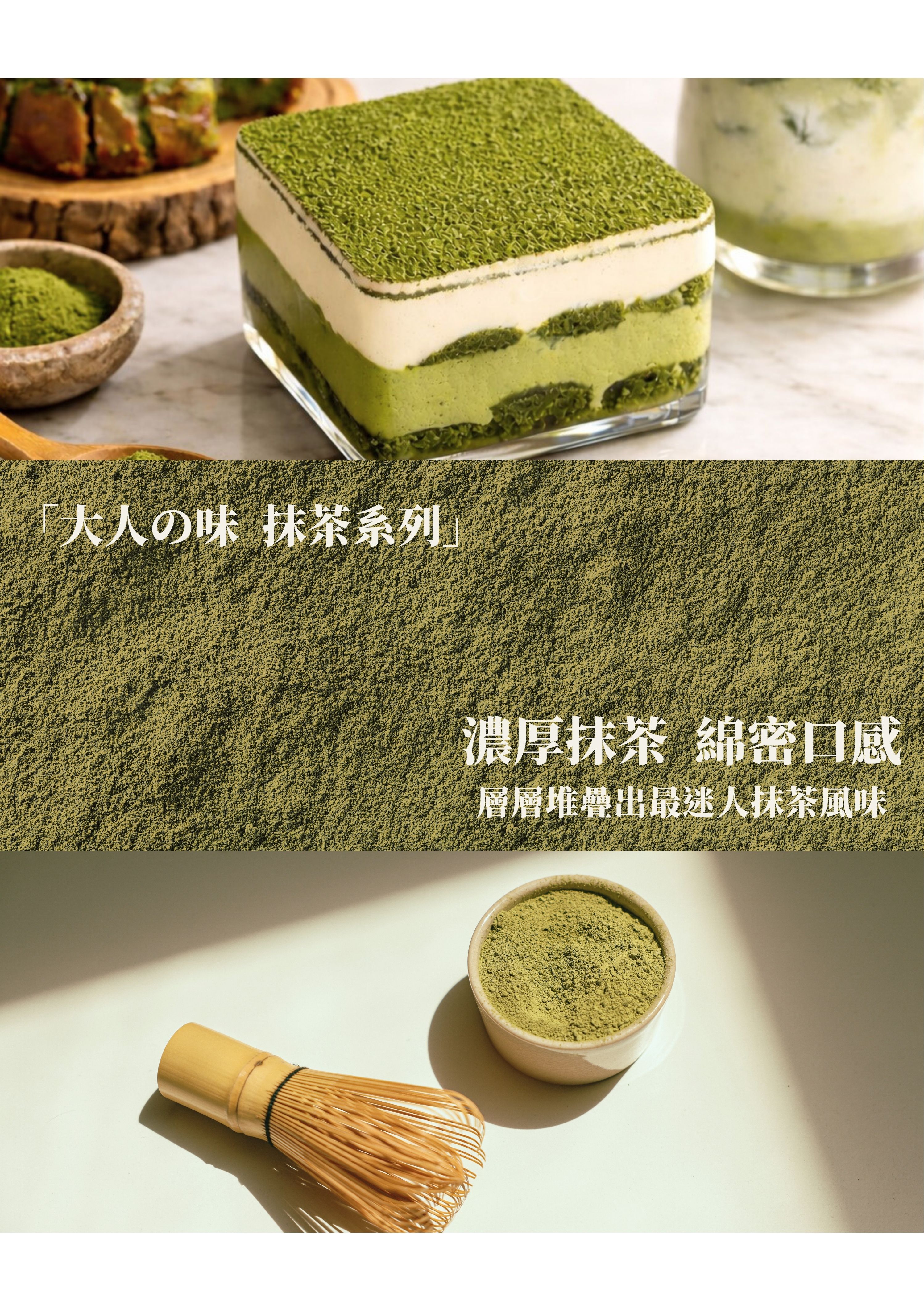 當微苦的抹茶遇見柔滑的提拉米蘇生乳,層層堆疊出剛剛好的溫柔濃郁。