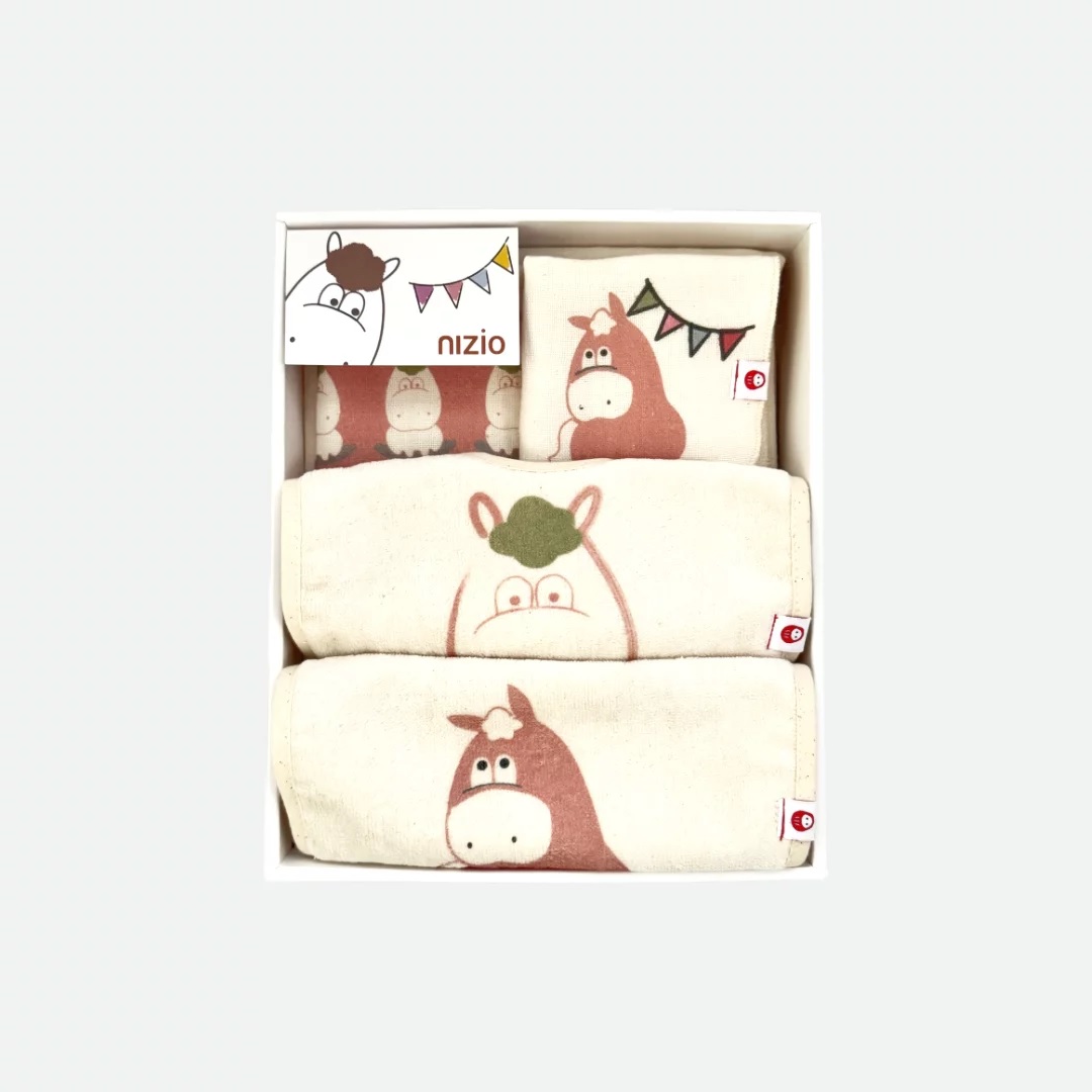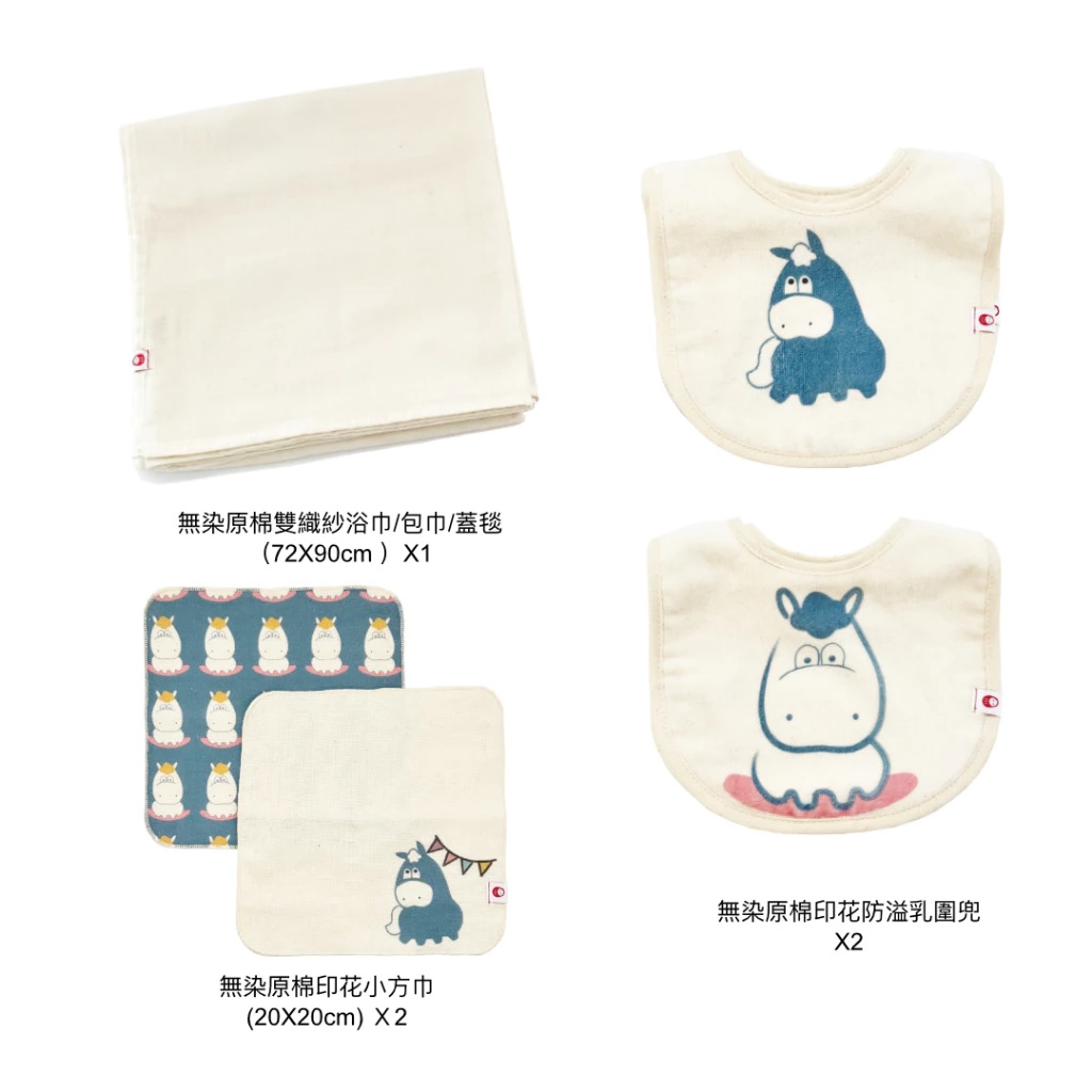 彌月禮盒商品特色:內含:①無染原棉雙織紗浴巾 73x90cm x 1 (原棉色:米白)②防溢乳圍兜 x 2③招福方巾x 2