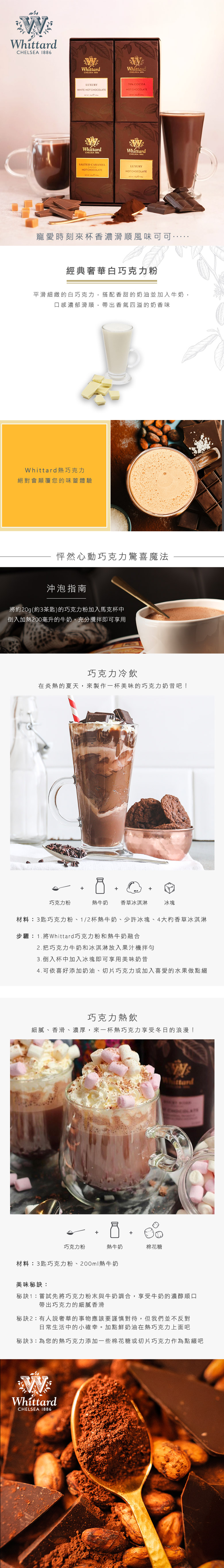 我們為您帶來一場夢幻的白巧克力冒險!平滑細緻的白巧克力搭配香甜的奶油並加入牛奶,口感濃郁滑順,帶出香氣四溢的奶香味,產生絕妙的甜蜜滋味,享受著香甜的午後時光,推薦給喜愛甜巧克力的人們,建議也可以使用無糖熱豆漿沖泡,風味更佳!