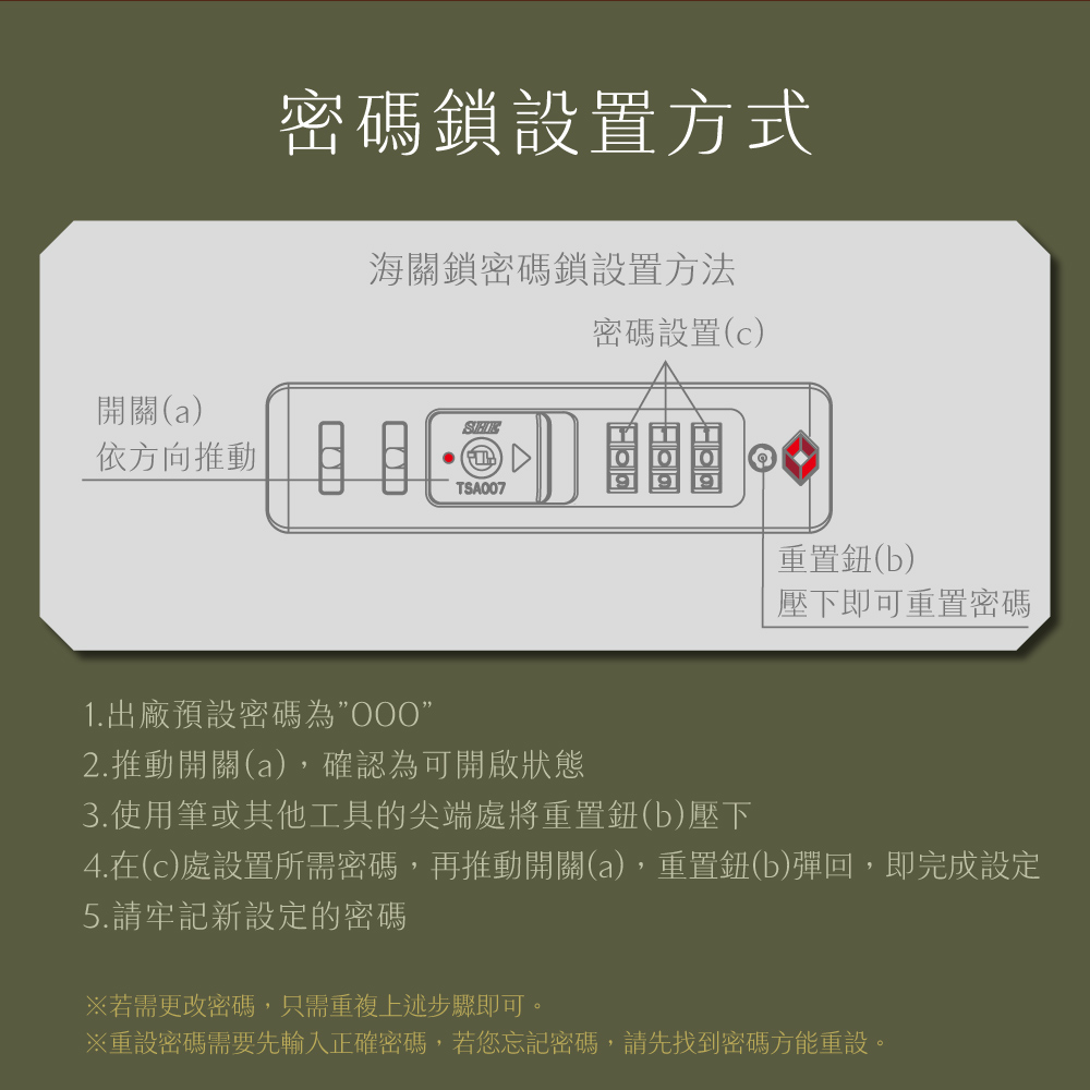 內嵌式TSA007海關鎖,共1000組密碼組合