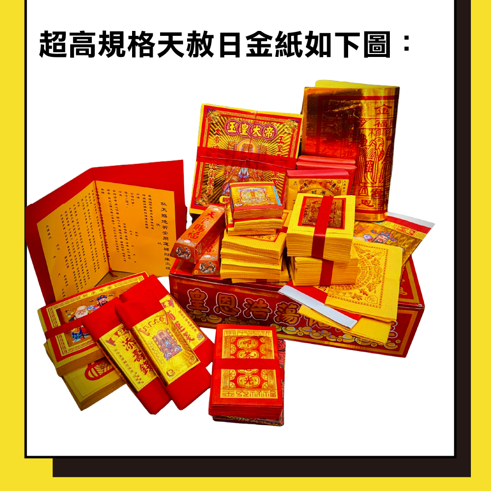 燒化一整盒特製天赦日金紙消除因果業障-定運勢方向消災解厄、補財補庫防小人、補庫、平安庇佑、消災解厄、提升全家家運,越燒運勢越旺!-《儀式、科儀》 1.消除因果業障2.燒化一整盒特製天赦日金紙3.全台獨家宴王供品《加持法器》:1.代燒證明2.祈福糖果束口袋 x 1在這一天,天界赦罪解厄、化解阻滯的力量最強因此被認為最適合懺悔改運、化煞轉運、補運補財庫法器即日起開始依訂單順序先行寄送,由法師先行開光及過爐加持,金紙則於天赦日燒化一份至多可填寫一位祈福者