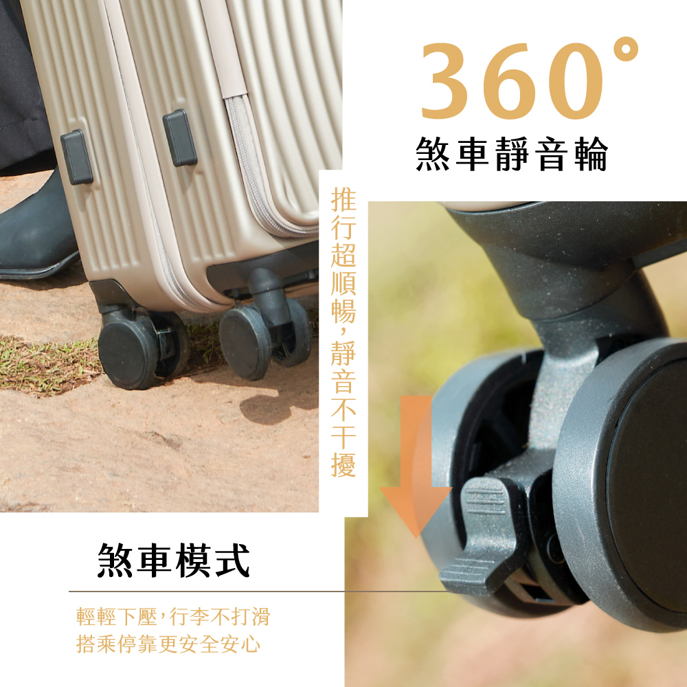 ‧靜音煞車輪|360°順暢推行,搭乘停靠更穩
