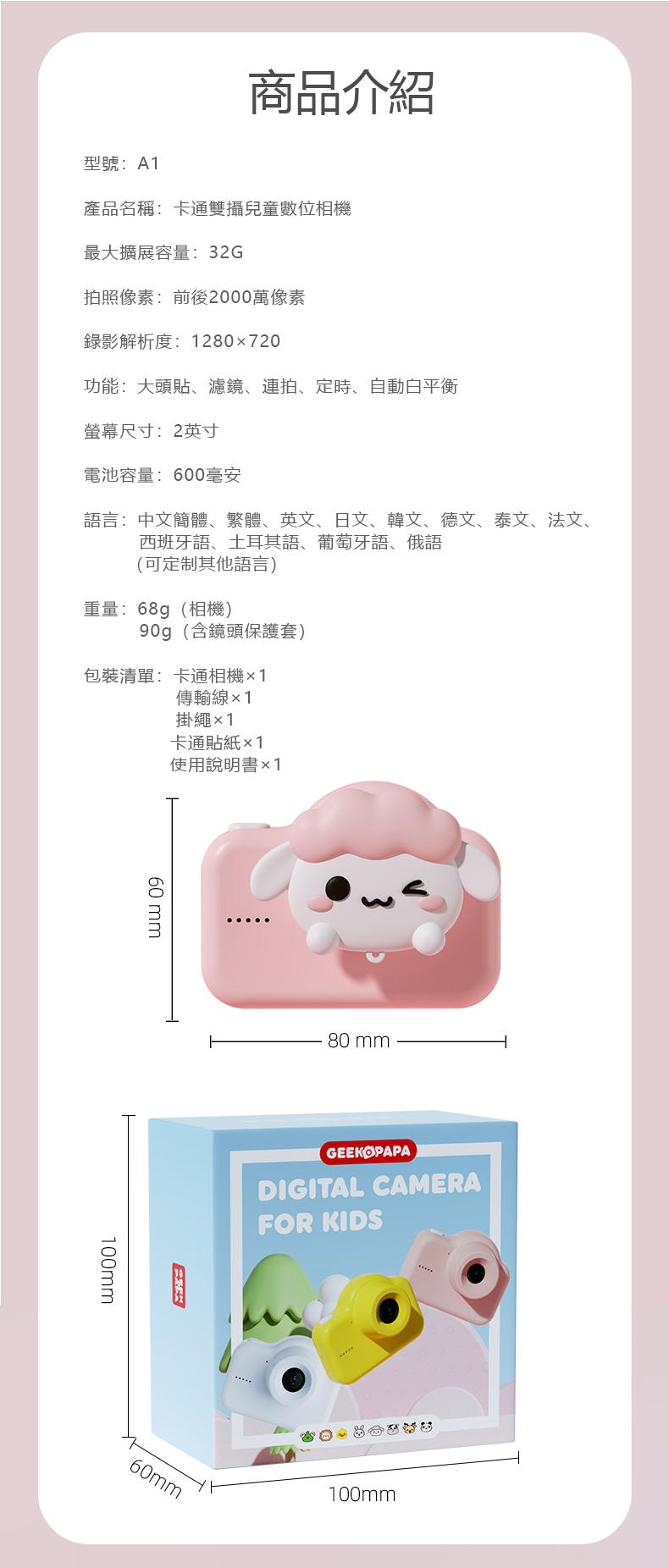 【GEEKPAPA兒童相機】GEEKPAPA x A1動物兒童迷你數位相機-款式可選 | NearMe | 線上送禮平台『獨家支援 收禮者改選禮物』