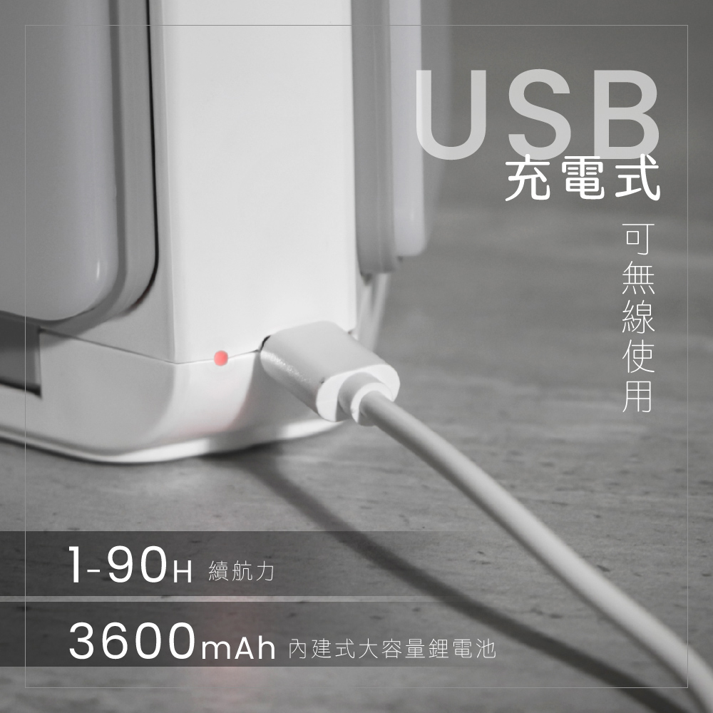 內建3600mAh大容量鋰電池,1~90小時超長續航力