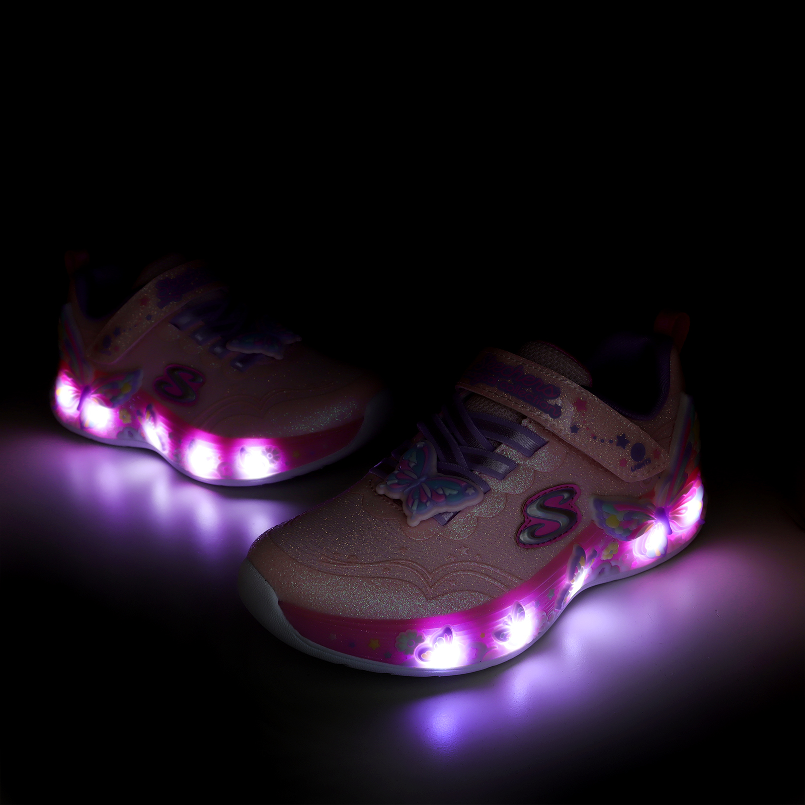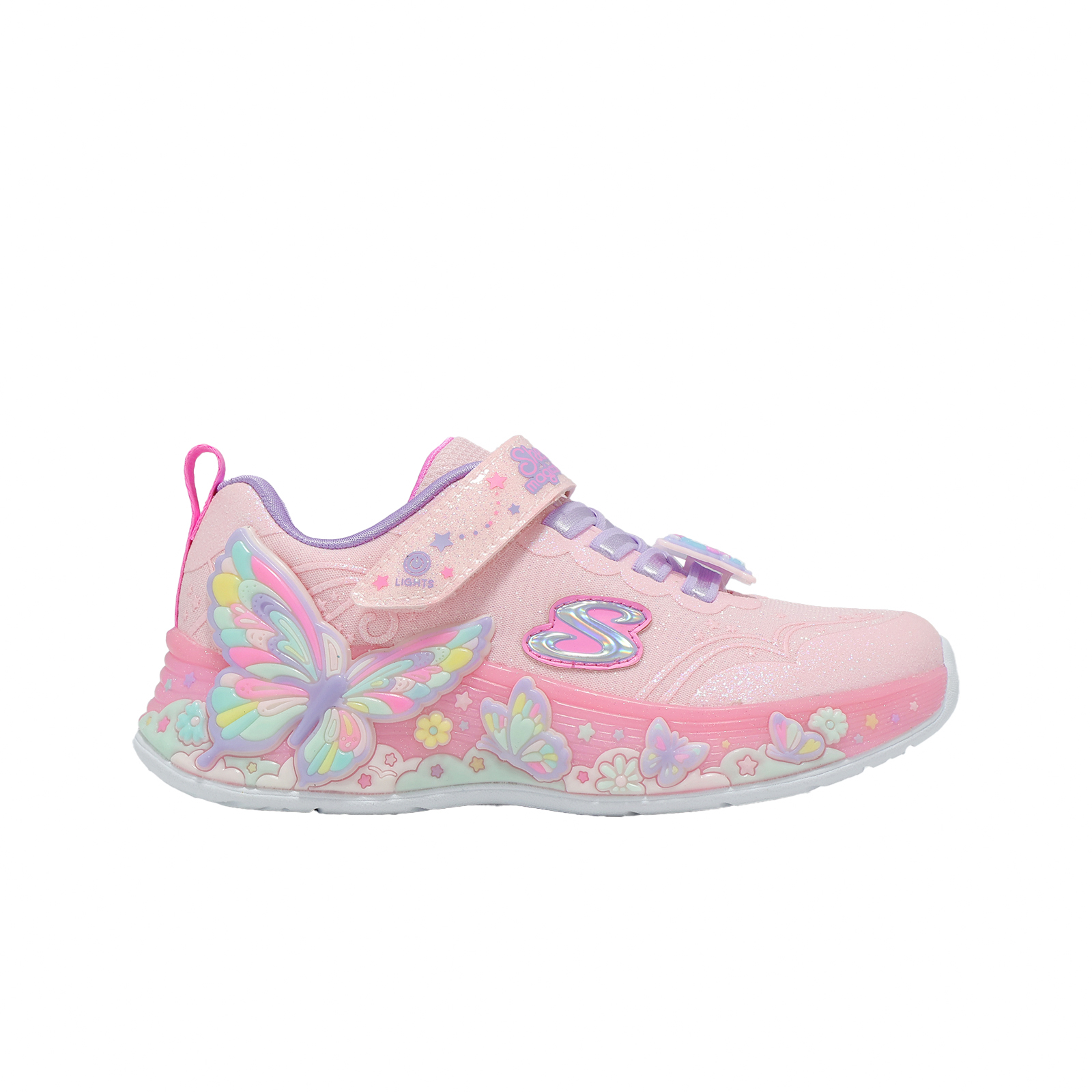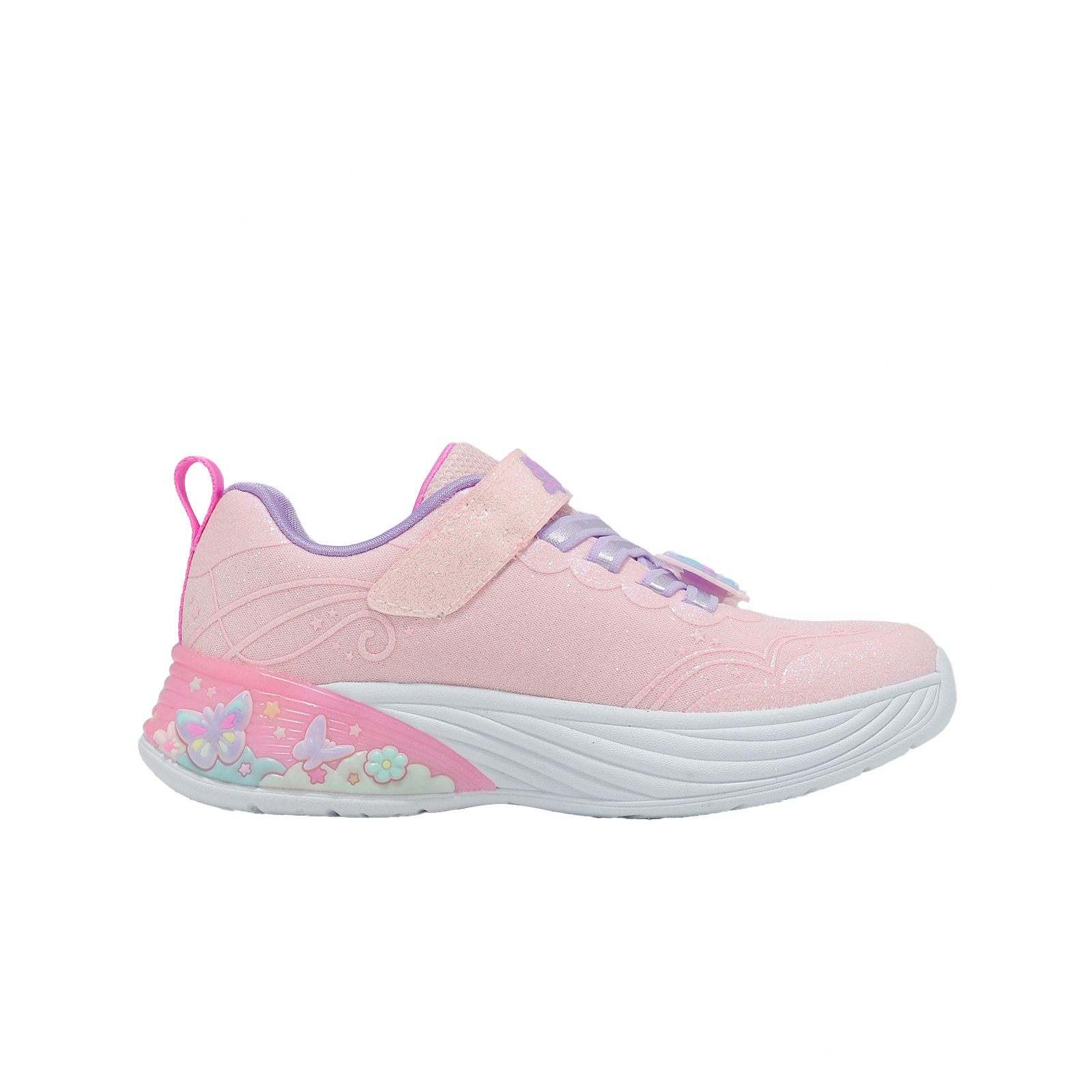 品牌: SKECHERS型號: 303065-LLPMT品名: S Lights-Butterfly Bliss版型: 版型正常BUTTERFLY BLISS 系列,蝴蝶仙子閃燈鞋,以翩翩蝴蝶的繽紛樂趣點亮每一天。這款蝴蝶主題閃燈運動鞋,採用亮粉網布鞋面,搭配蝴蝶造型裝飾和蝴蝶環繞造型中底,讓小女孩走到哪都閃耀動人。