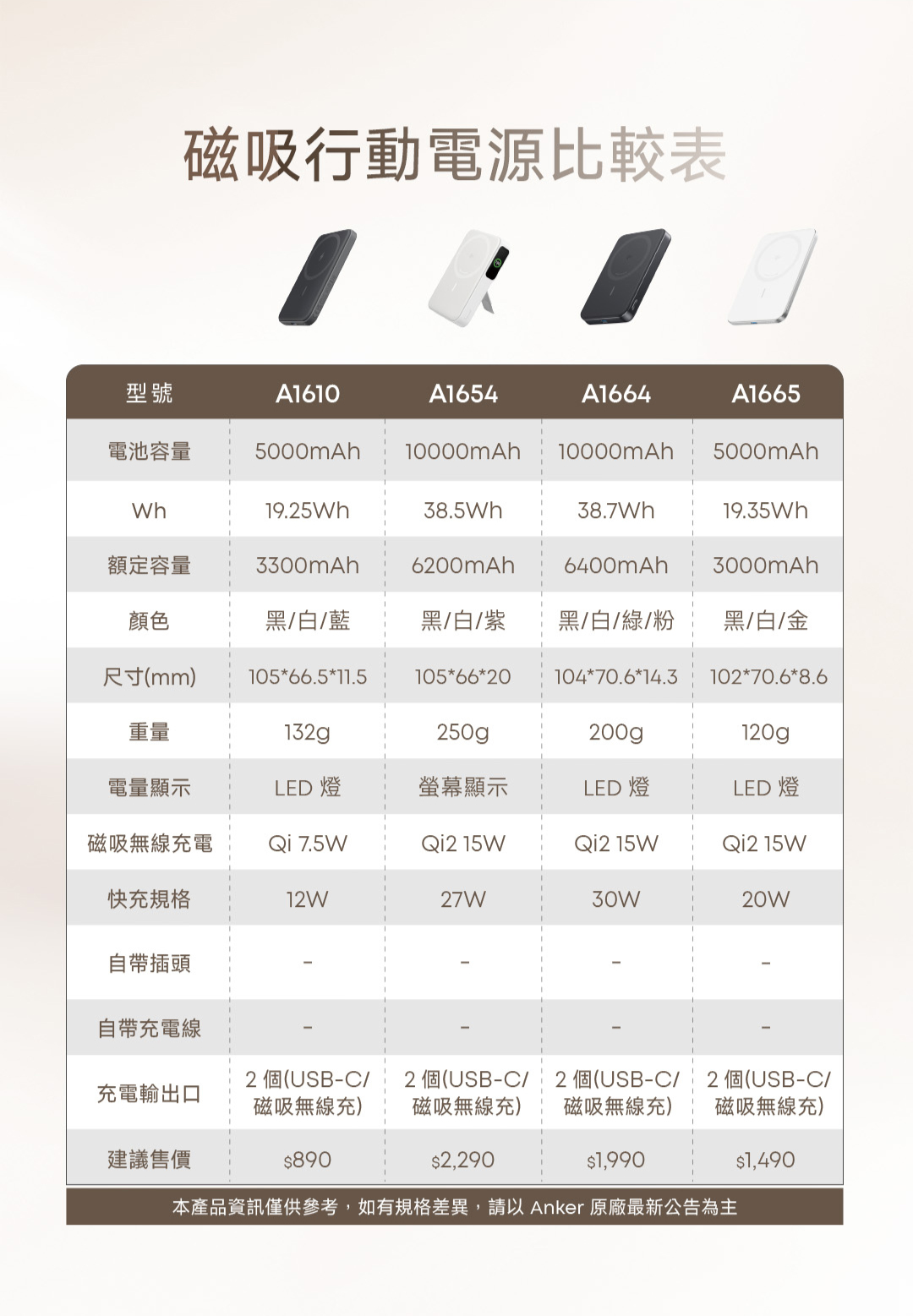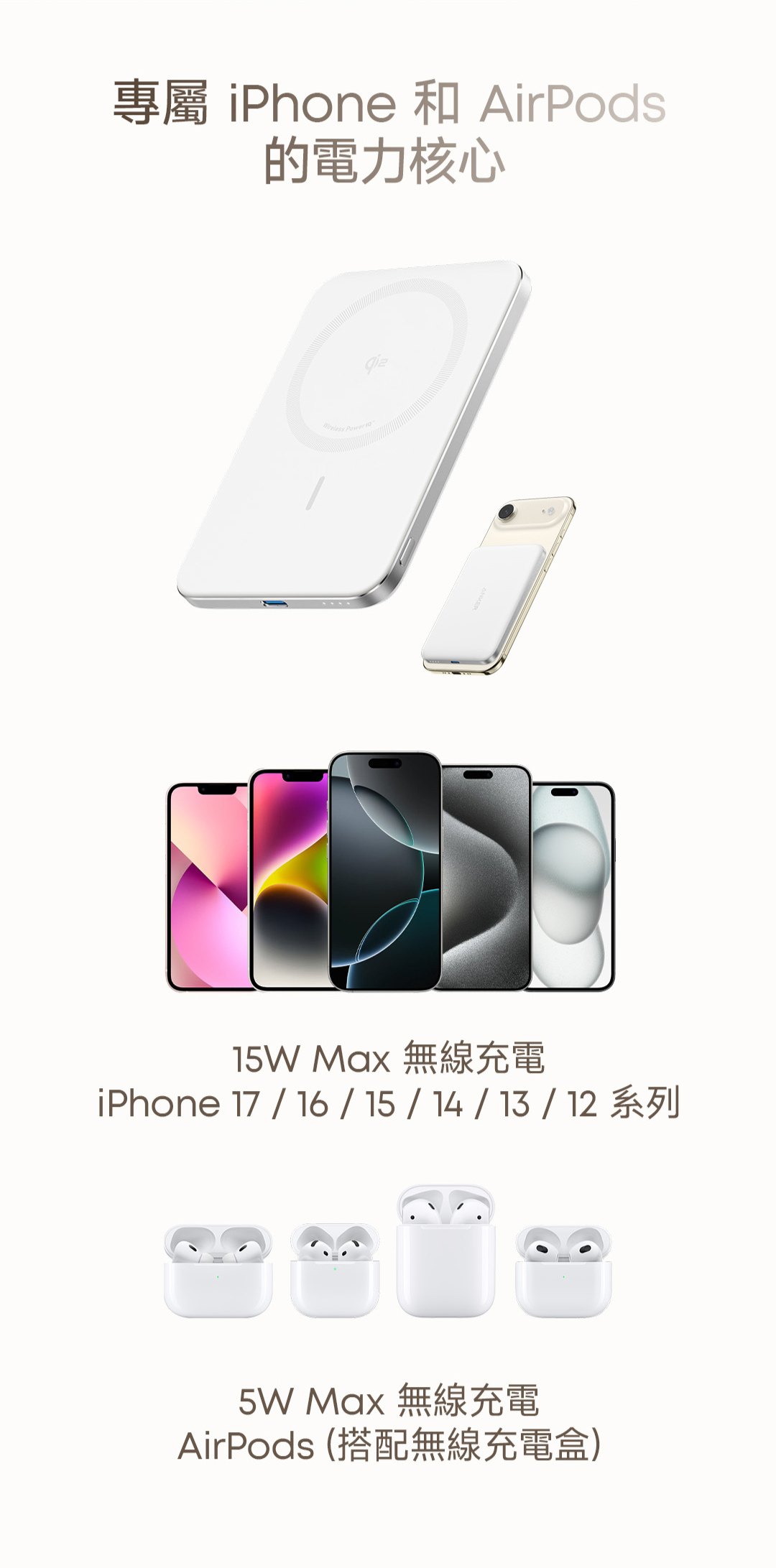 名稱:【Anker】A1665 5000mAh Qi2極致輕薄磁吸行動電源-白