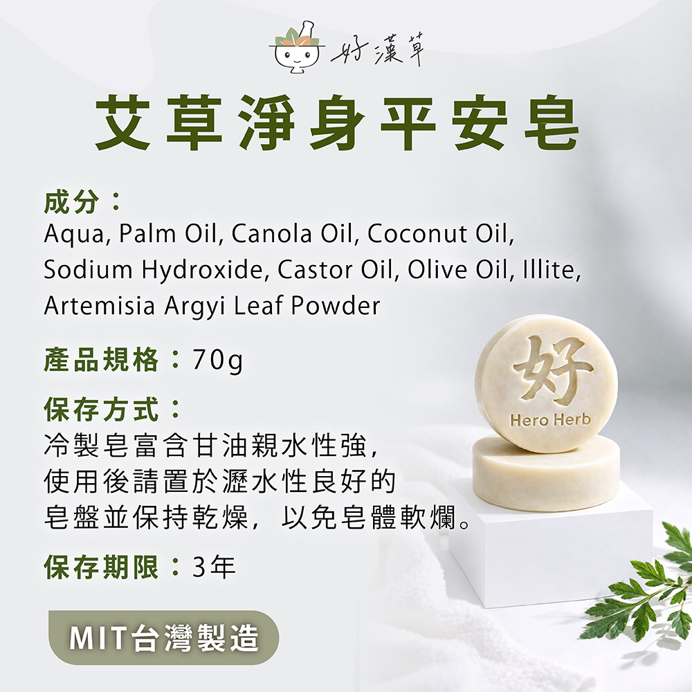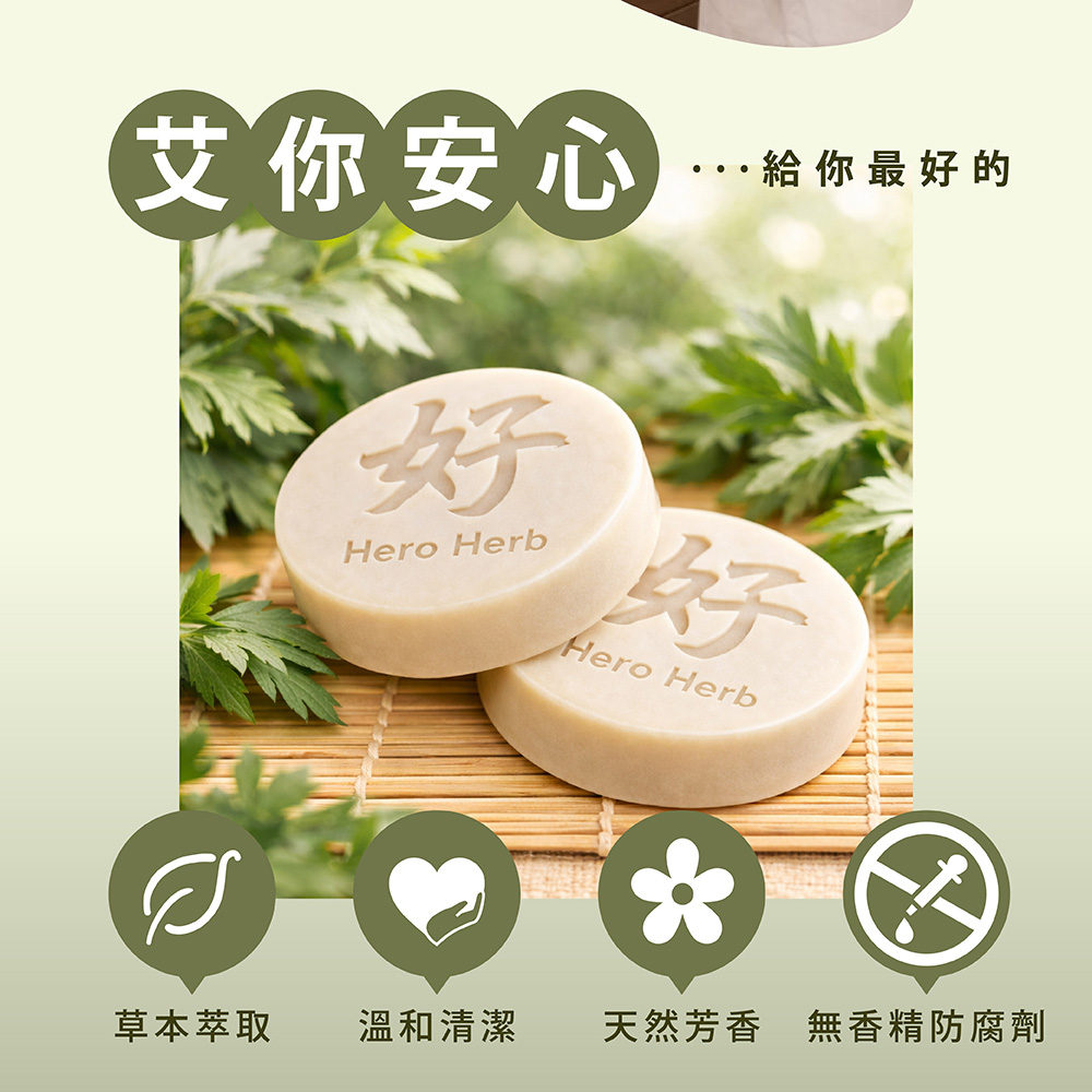 草本艾草 × 冷製手工皂 × 無香精防腐劑