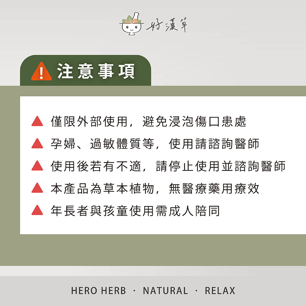 A: 雖然我們的成分均為天然草本,但本產品是以「外用沐浴」規格製作(如過濾袋材質、原料處理方式),請勿食用。僅供泡腳、泡澡或擦拭身體使用。