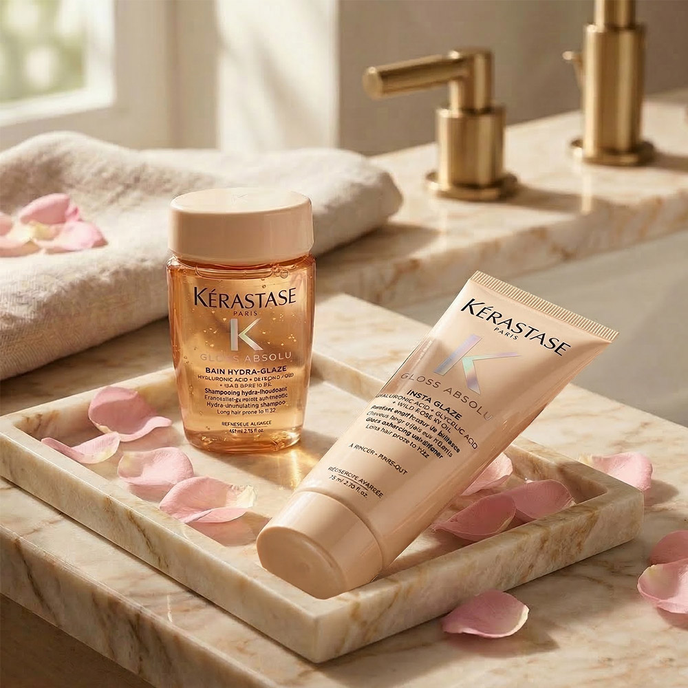 -KERASTASE 卡詩 釉光香頌髮乳(75ml)+釉光香頌玫瑰髮浴(80ml)