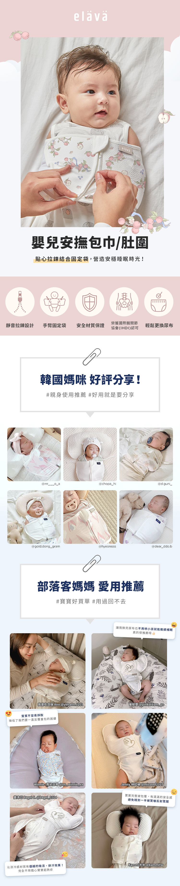 Elava 韓國 嬰兒安撫包巾/肚圍經專業專利設計,提供寶寶安靜睡眠的環境更避免驚嚇反射,深受韓國媽媽圈愛用推薦!