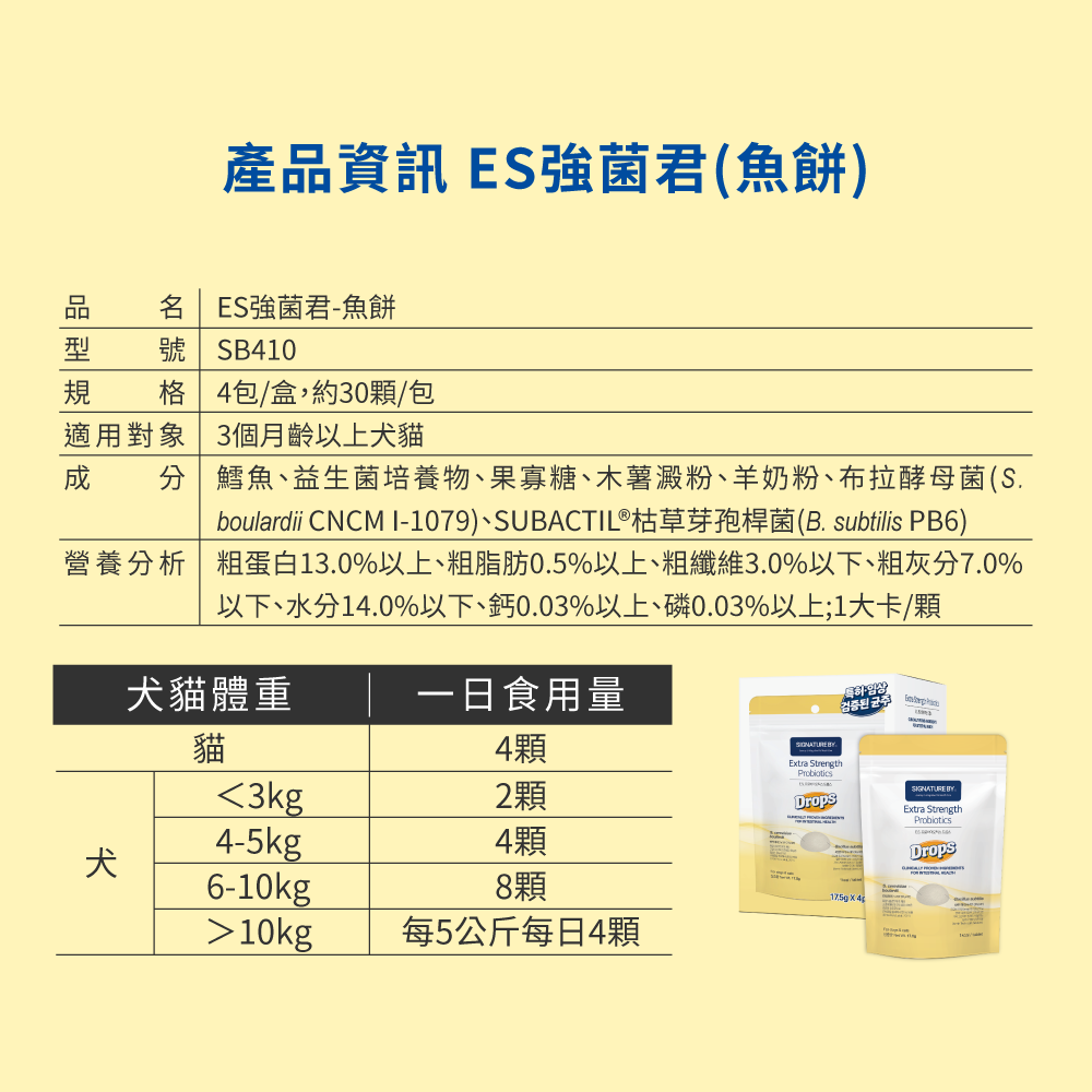 名稱: 韓國SB 韓國 ES強菌君 (寵物耐性益生菌)鱈魚餅(盒裝/4包)- 犬貓適用