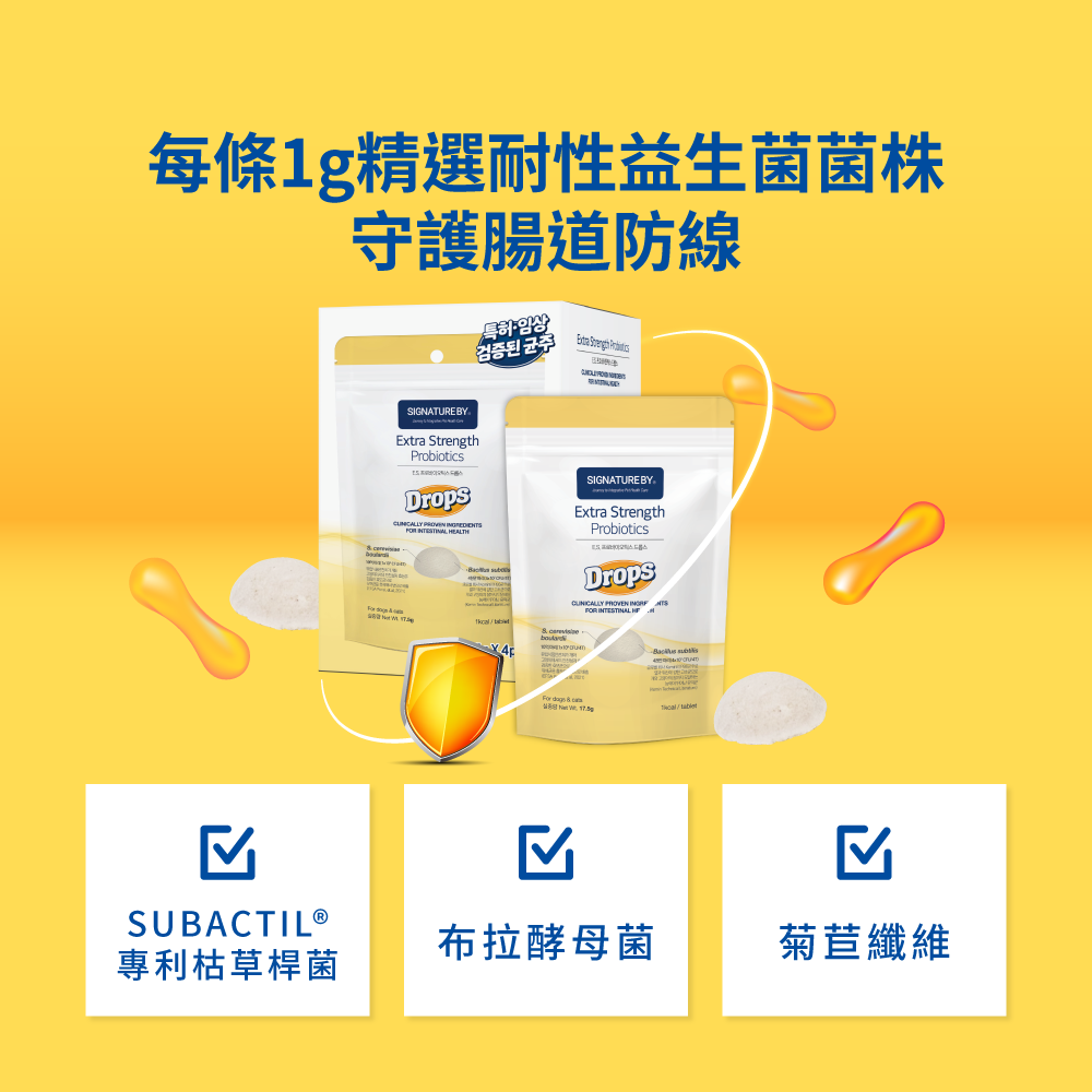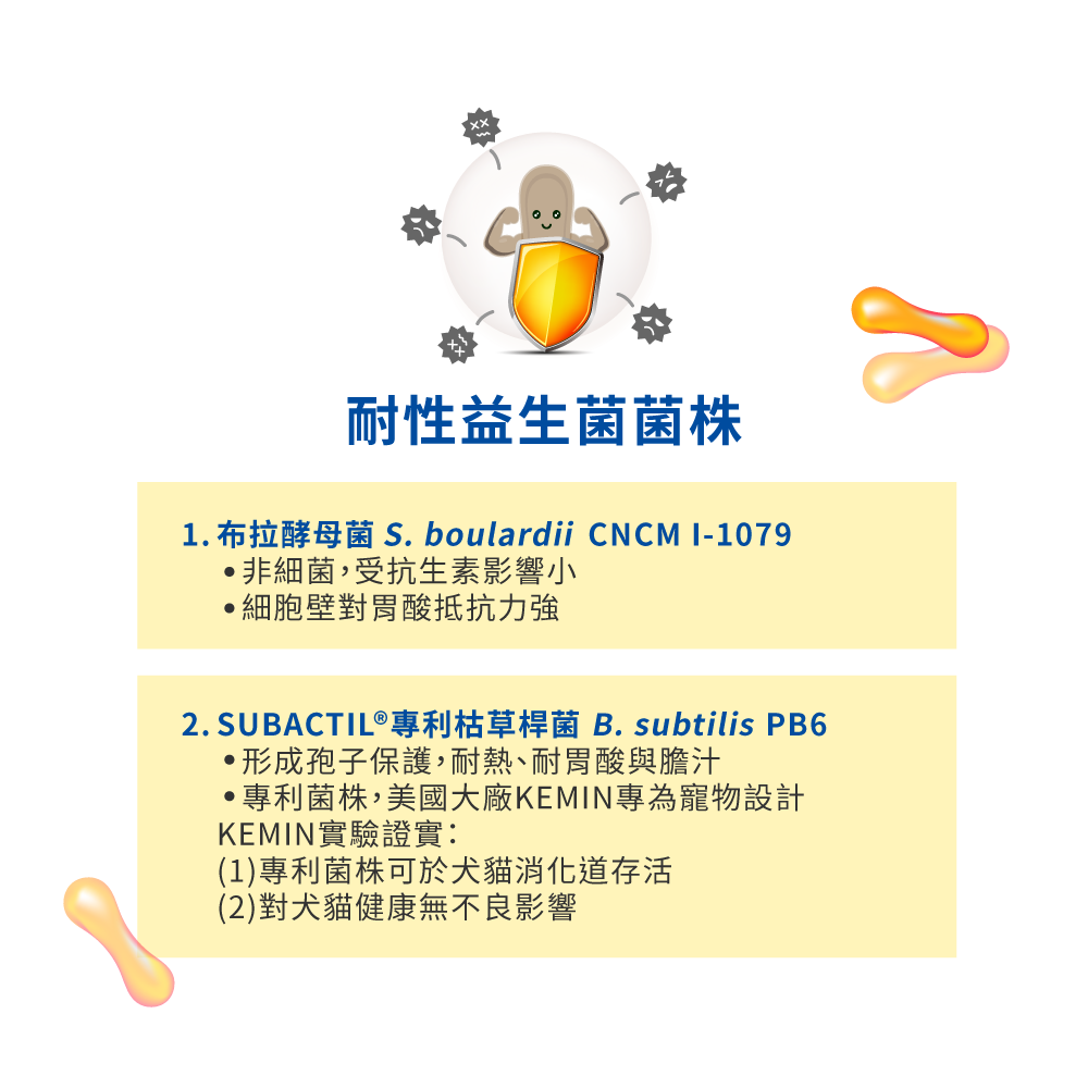 精選耐性且豐富益生菌菌株耐胃酸、膽汁、不怕抗生素布拉酵母菌、SUBACTIL專利枯草桿菌鱈魚餅可當零食犬貓適用* 台灣食品安全檢測重金屬合格* 超過3000家韓國獸醫院指定使用