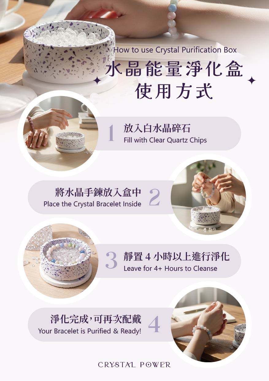 防碰撞摔落-水晶性質脆弱,不要讓水晶手鍊從高處摔落,也不要重壓。