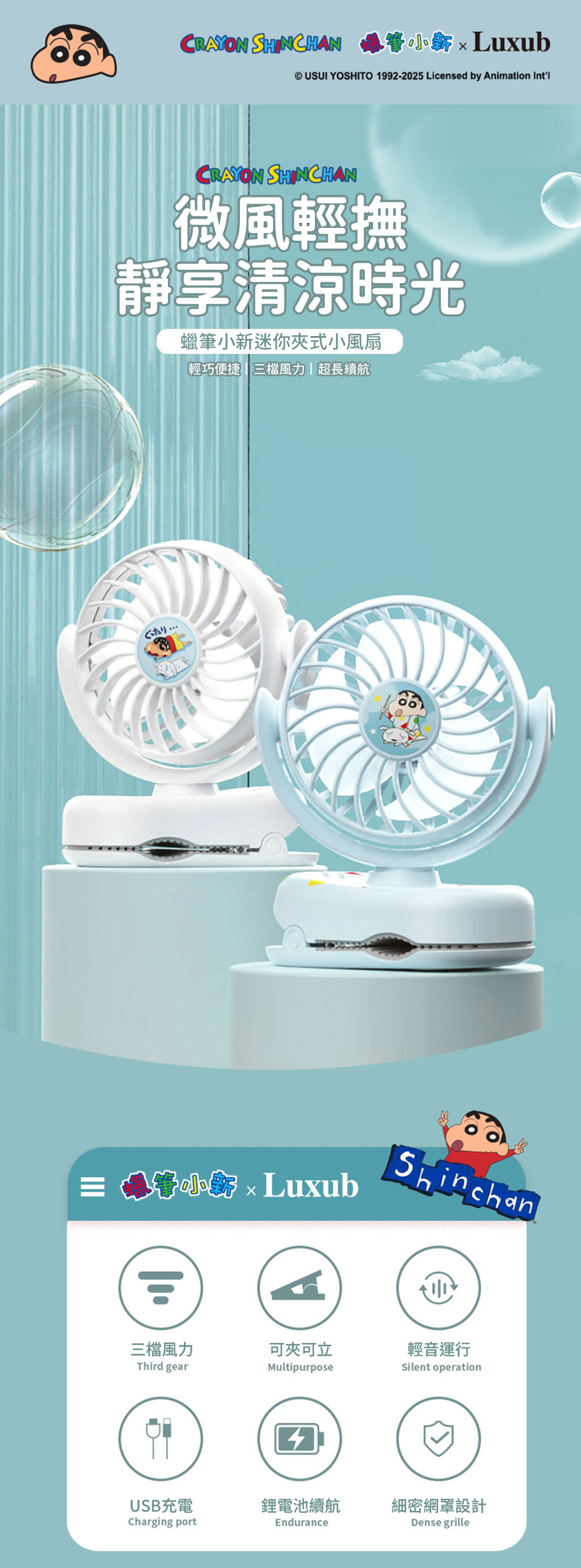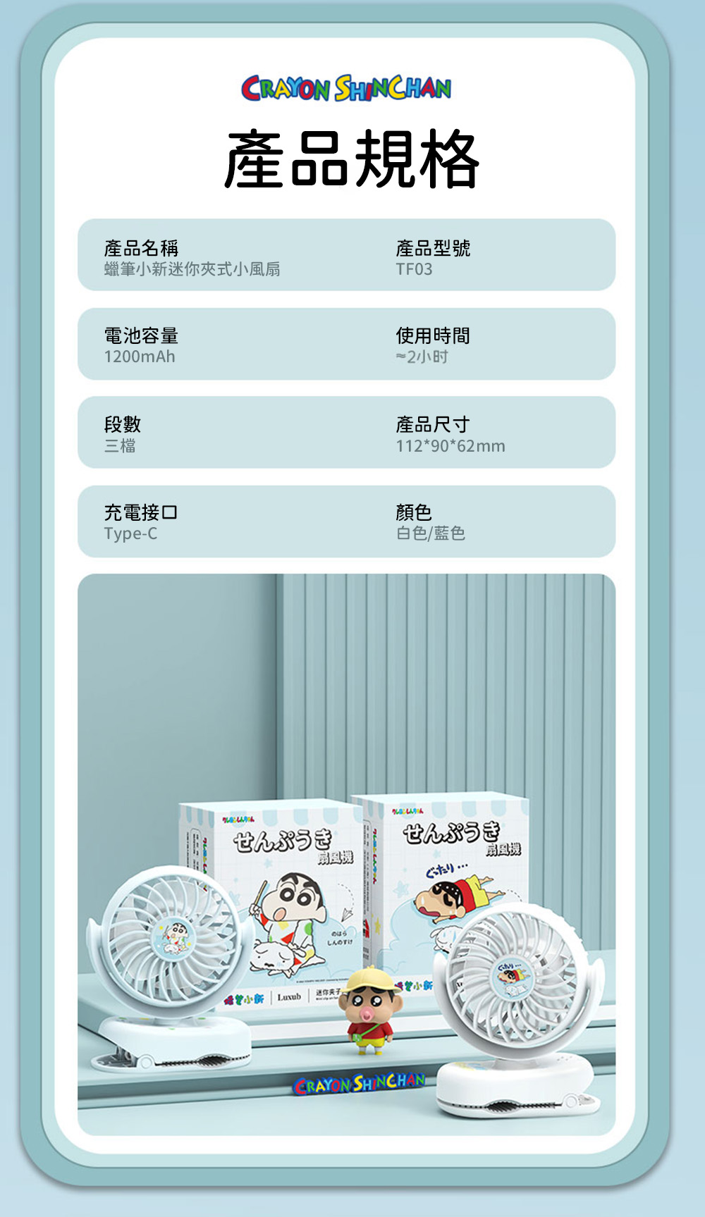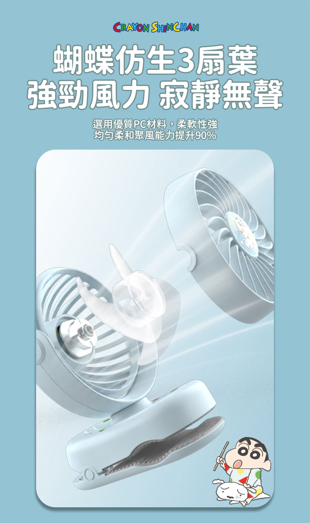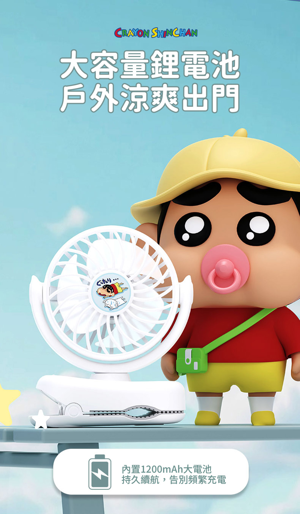 蠟筆小新 官方授權設計迷你夾式設計 多場景使用1200mAh 電池續航Type-C 充電接口輕巧便攜設計 外出好攜帶ABS + PC 材質 輕量耐用