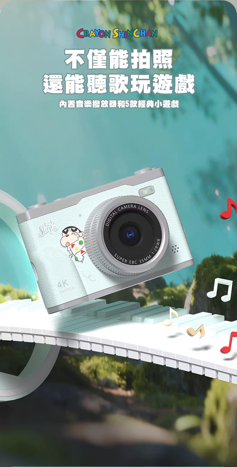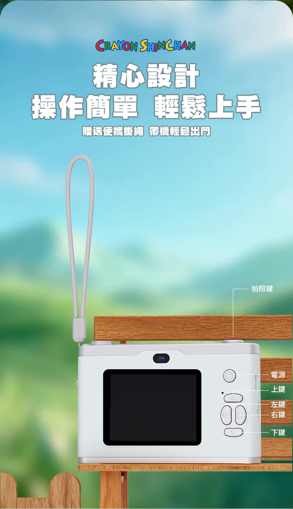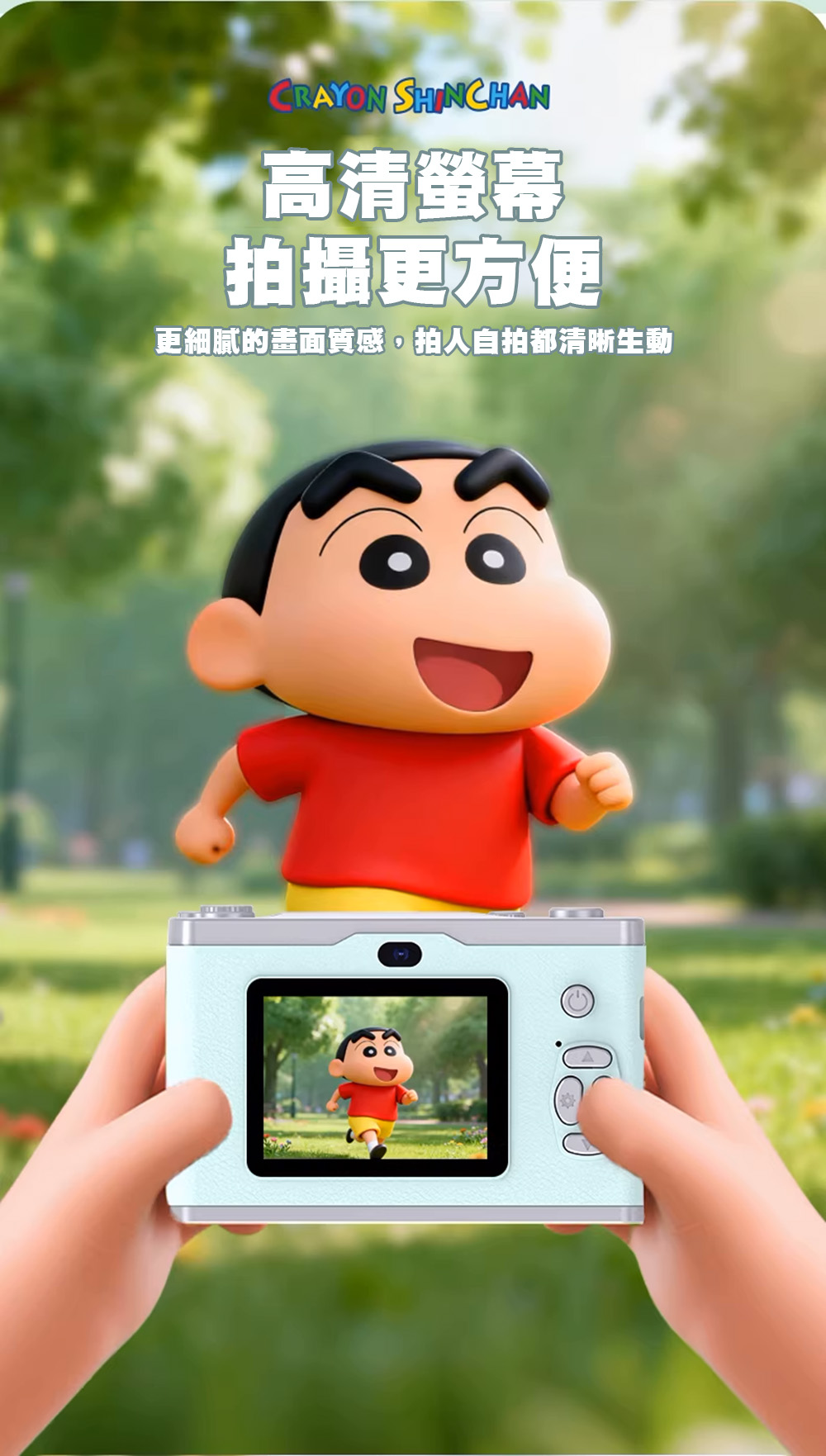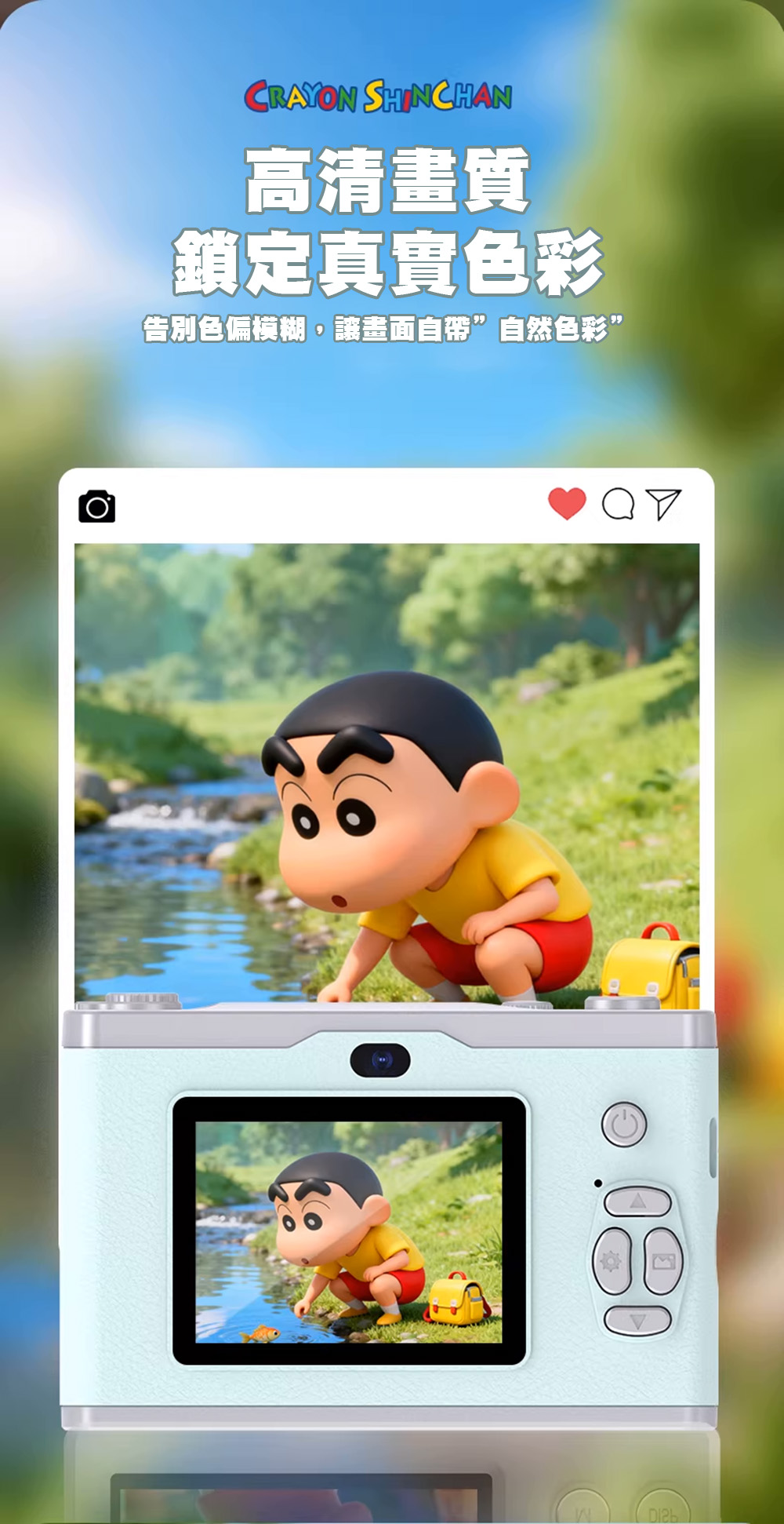 HD 高畫質拍照與錄影IP 濾鏡效果 照片更有趣LED 補光燈 夜間拍攝更清晰卡通遊戲 + 音樂播放輕巧便攜 迷你相機設計