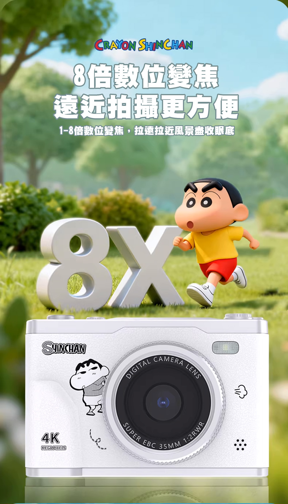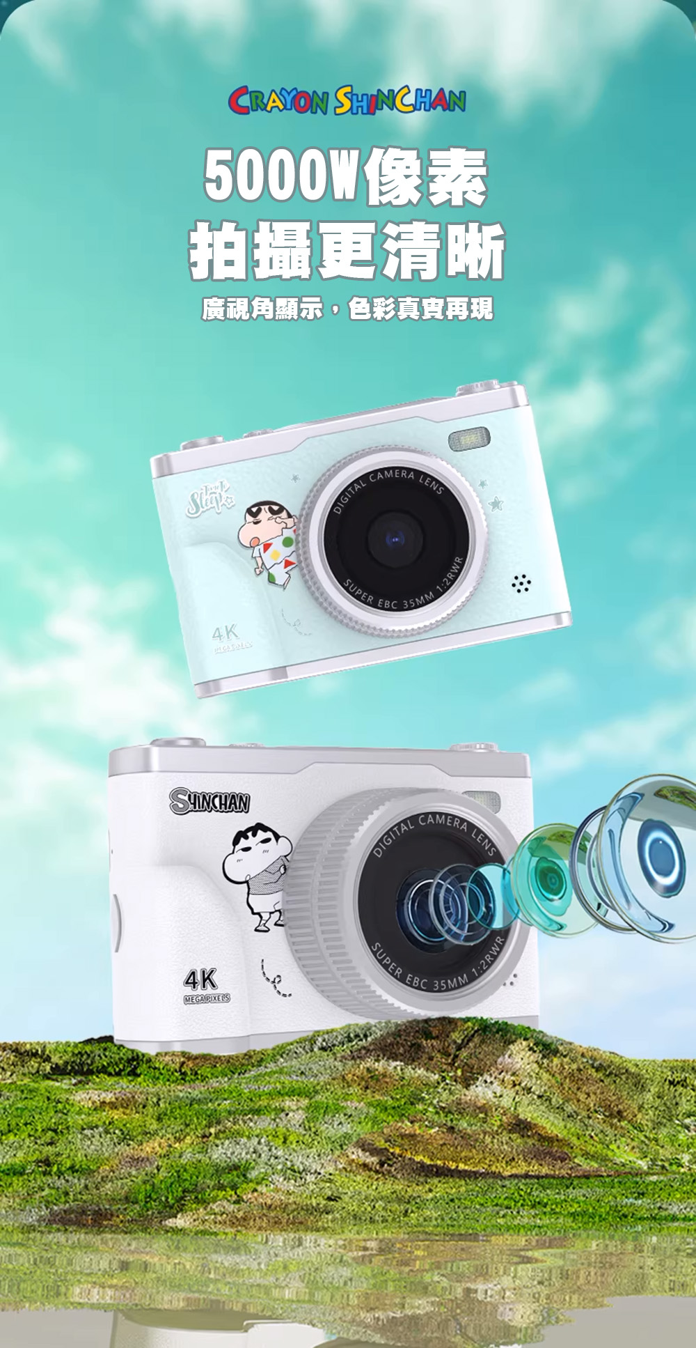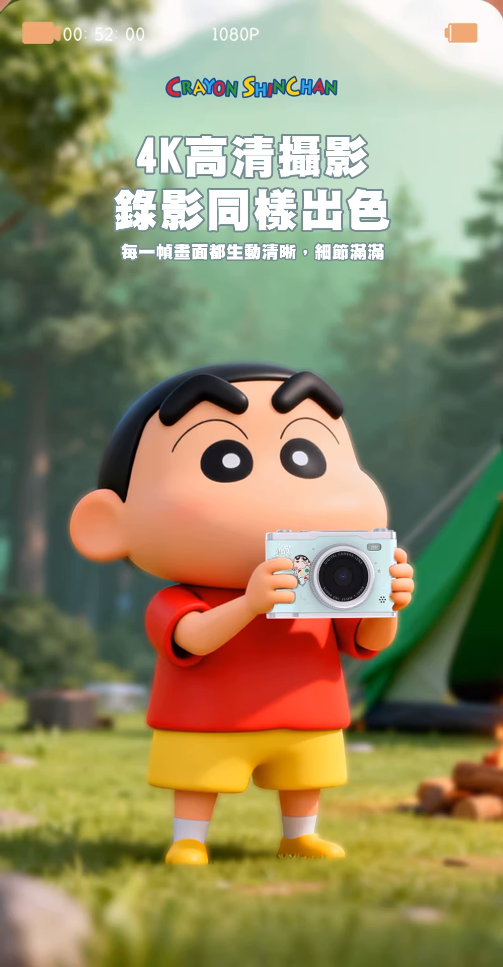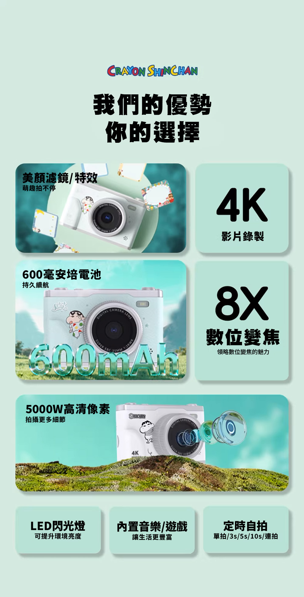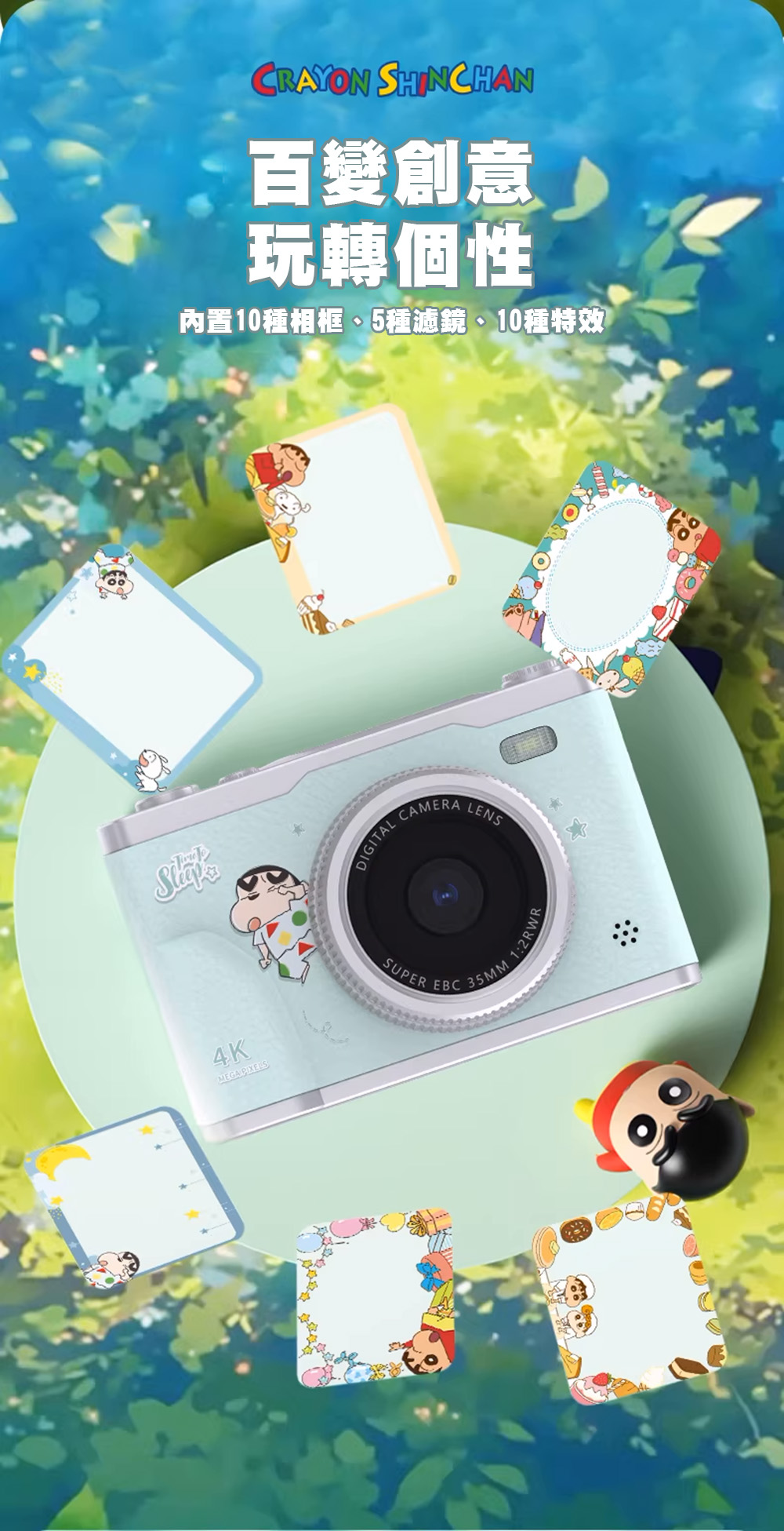 HD 高畫質拍照與錄影IP 濾鏡效果 照片更有趣LED 補光燈 夜間拍攝更清晰卡通遊戲 + 音樂播放輕巧便攜 迷你相機設計