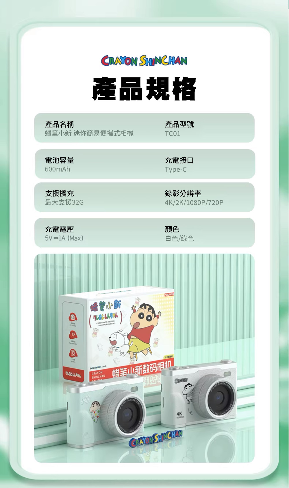 型號:TC01電池容量:600mAh充電時間:約2小時充電電壓:DC5V-1A充電接口:Type-C無內附記憶卡,需另外購買