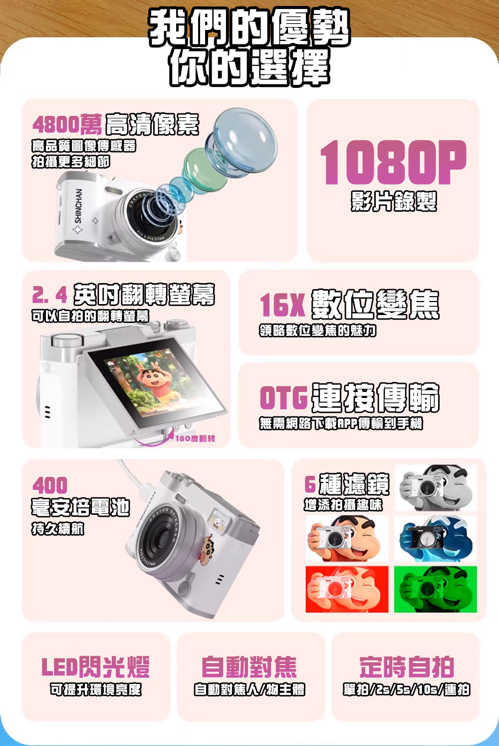 科技感外型 時尚簡約輕巧機身設計 外出攜帶方便400mAh 電池容量 日常使用足夠ABS 高品質材質 輕量耐用收藏與拍照兼具