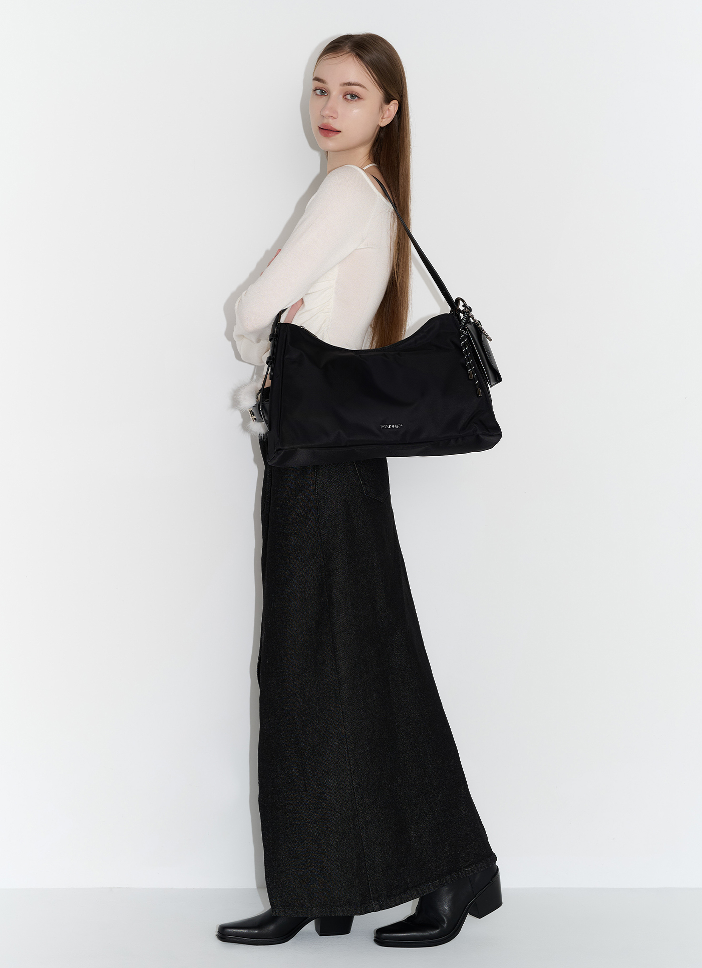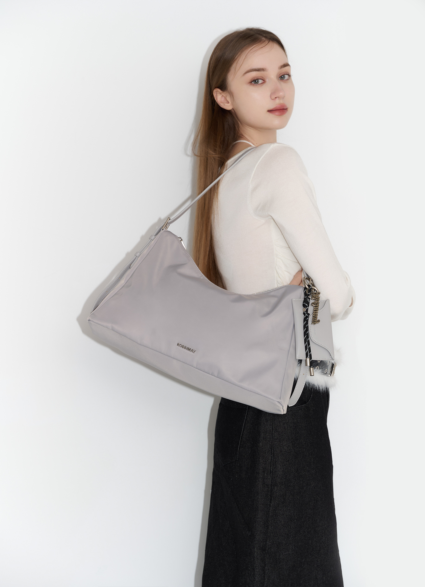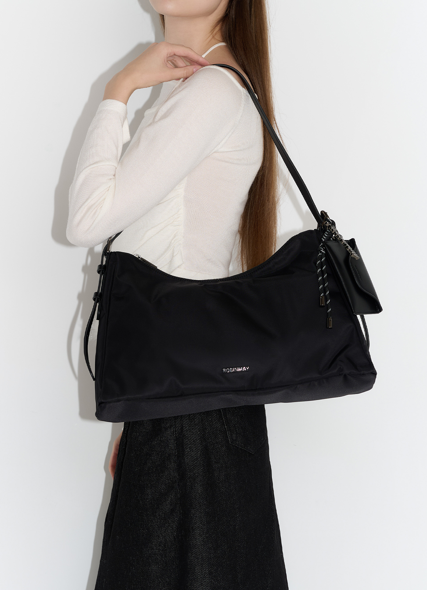 商品編號:ZB026尺寸:長44cm / 寬10cm / 高25cm背帶長度:最短59cm / 最長96cm肩背高度:35-54cm包內收納隔層:拉鍊x1、口袋x1背法:肩背、斜背材質面料:輕盈、防潑水的高磅數尼龍材質、高級訂製PU皮革開法:拉鍊可放置長夾、6.7吋手機✔️適合日常通勤使用的肩背包,流浪包外觀寬敞置物空間,輕鬆裝載隨身外出物品ROBINMAY 金屬字母 LOGO 標誌一體成型背帶設計,可調節背帶長度轉換背法附設計感小包吊飾串(12.5*1*8cm)