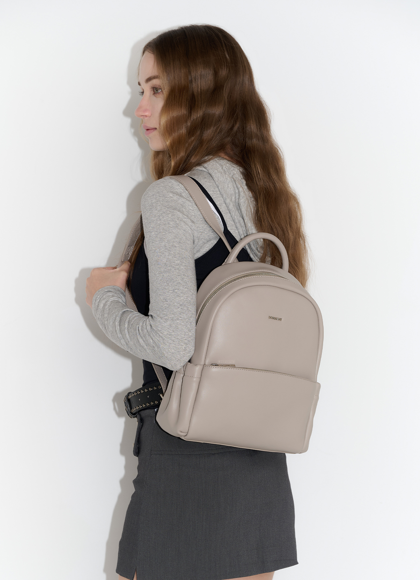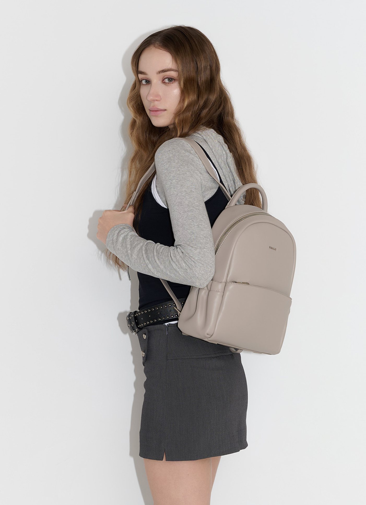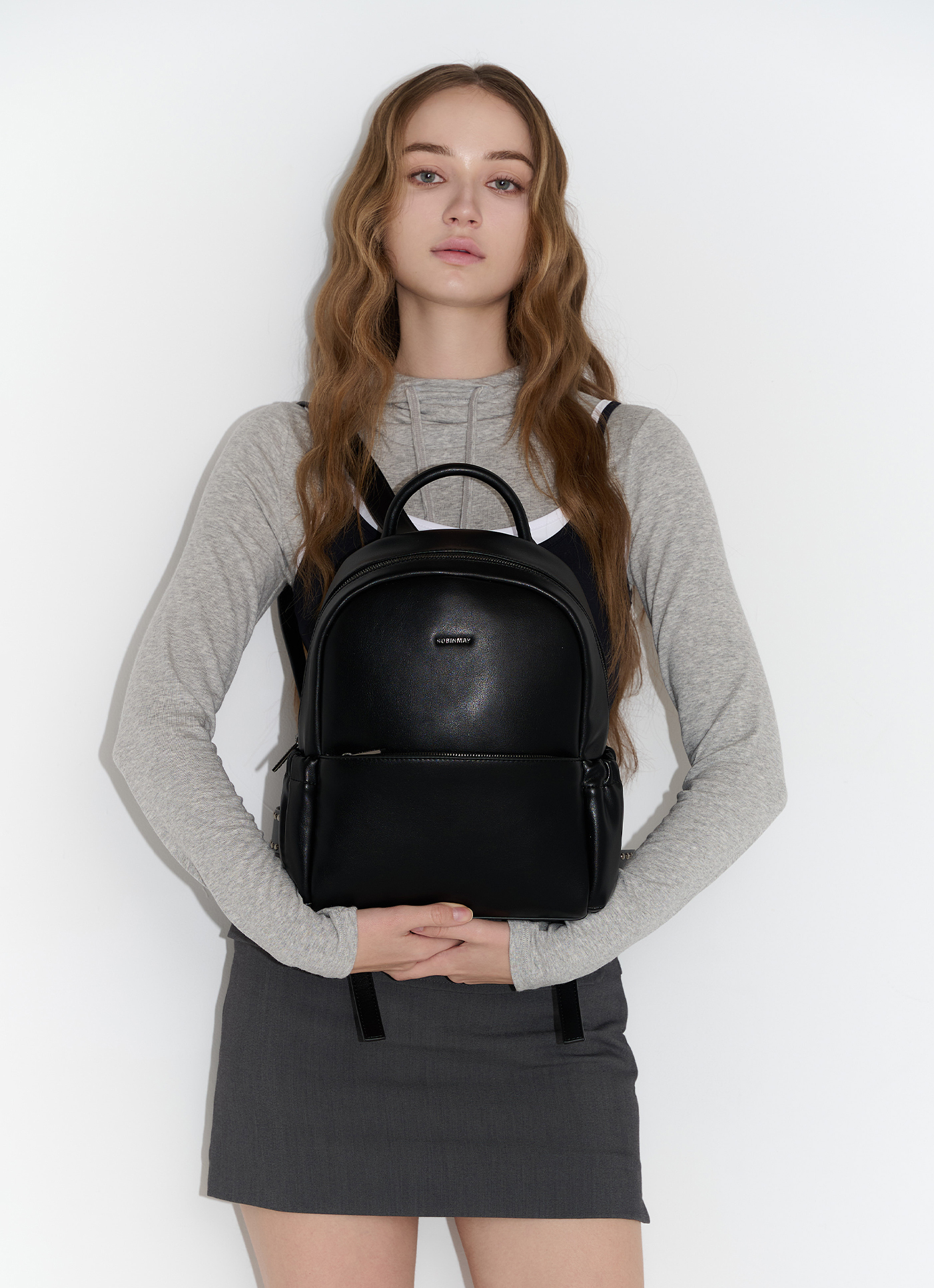 可放置長夾、6.7吋手機 ✔️、A4尺寸不可放✖️簡約輕奢後背包設計,適合日常通勤使用配戴ROBINMAY 金屬字母 LOGO 標誌寬敞置物空間,可裝載外出隨身物品背帶採用穿孔調節設計,可依身形調整合適長度