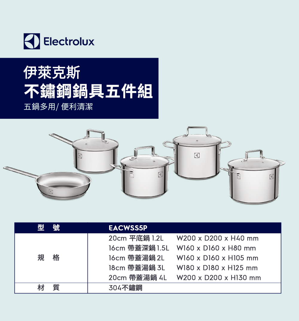 1x 16cm 帶蓋深鍋 1.5L 1x 16cm 帶蓋湯鍋 2L 1x 18cm 帶蓋湯鍋 3L 1x 20cm 帶蓋湯鍋 4L