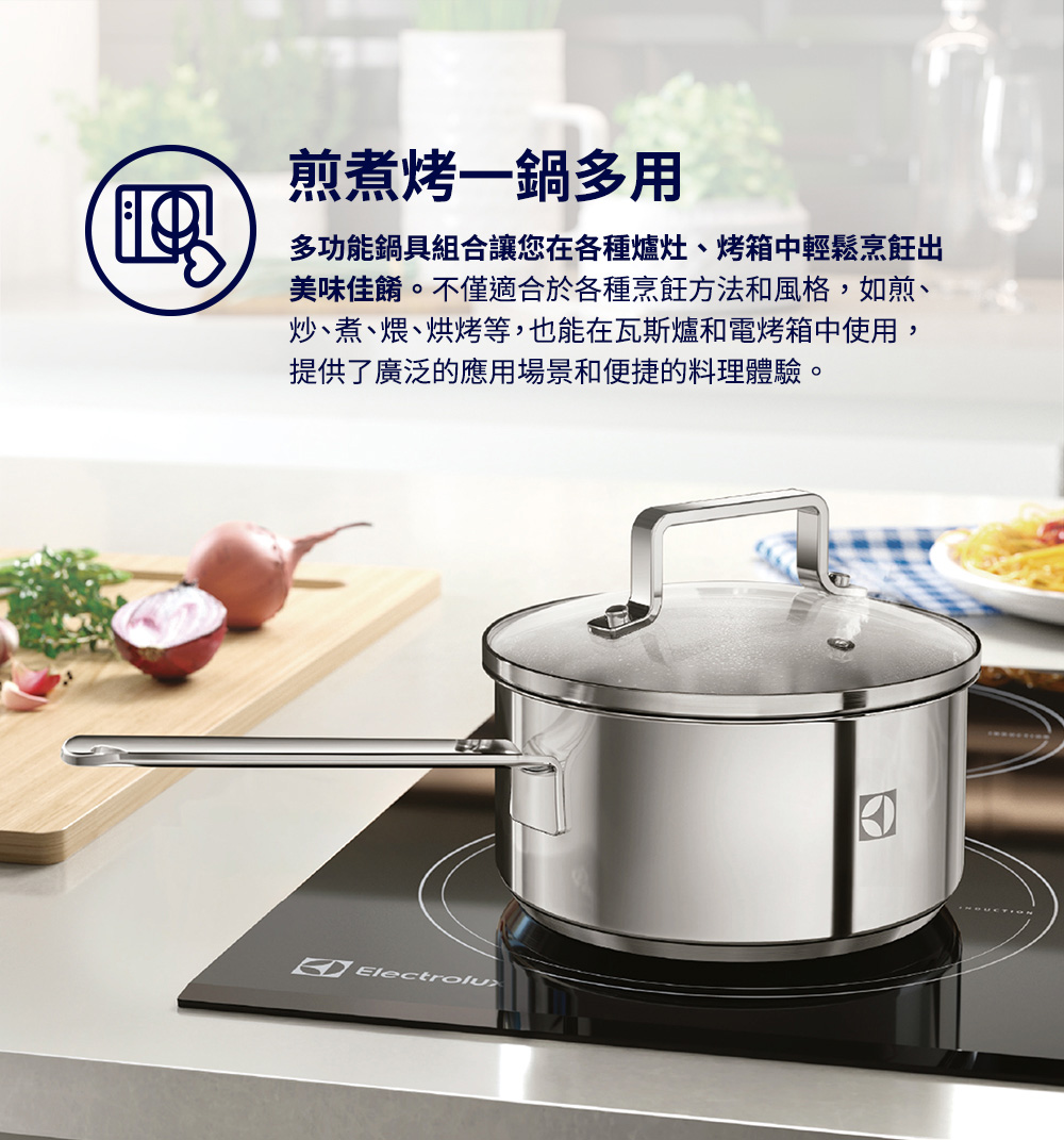 適用於所有爐灶和烤箱類型的多功能烹飪。