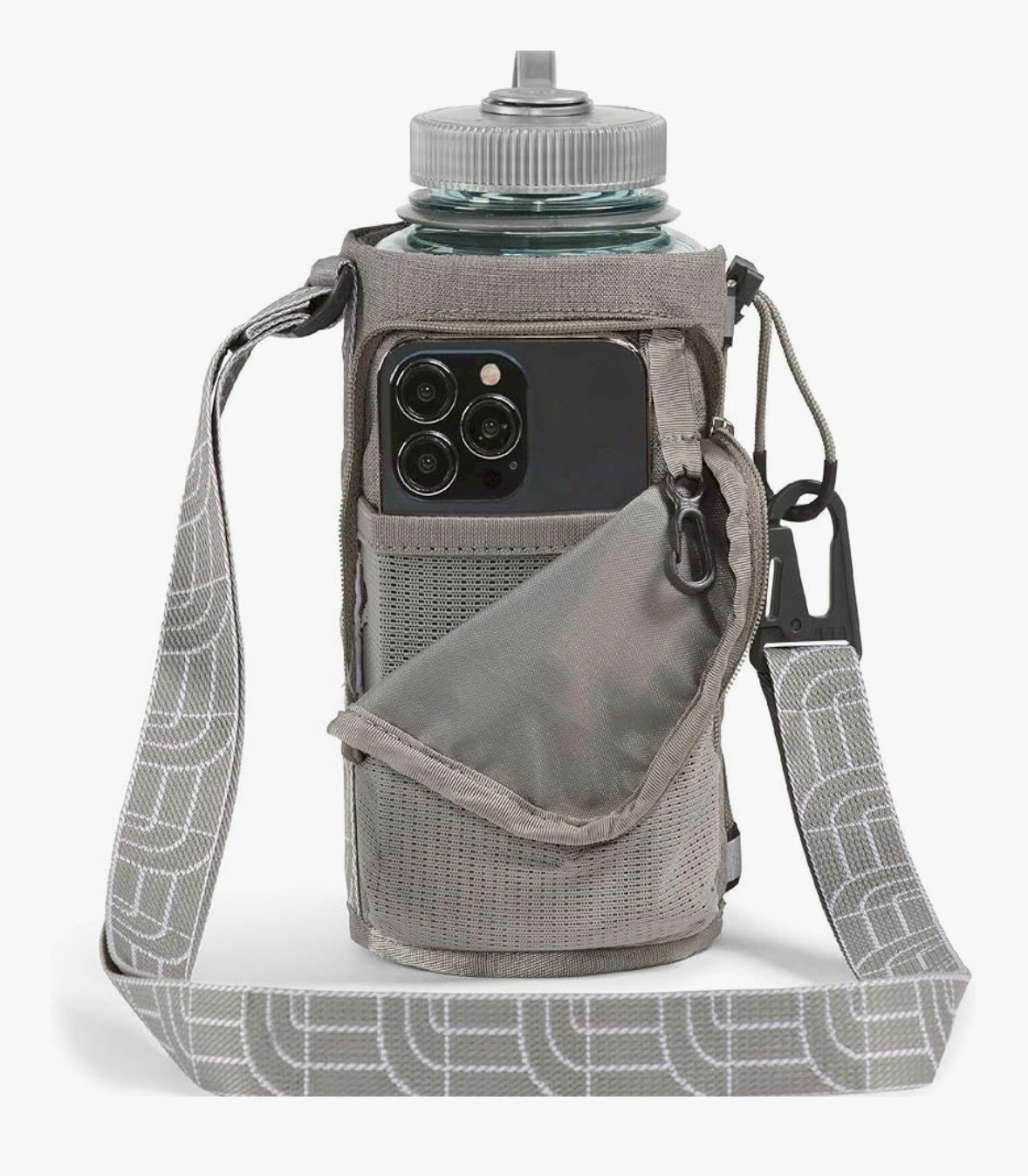 它不只是一個水壺袋,更是你的隨身機能小包。前方精巧的拉鍊隔層,幫你收好手機與重要物品,讓雙手徹底解放。