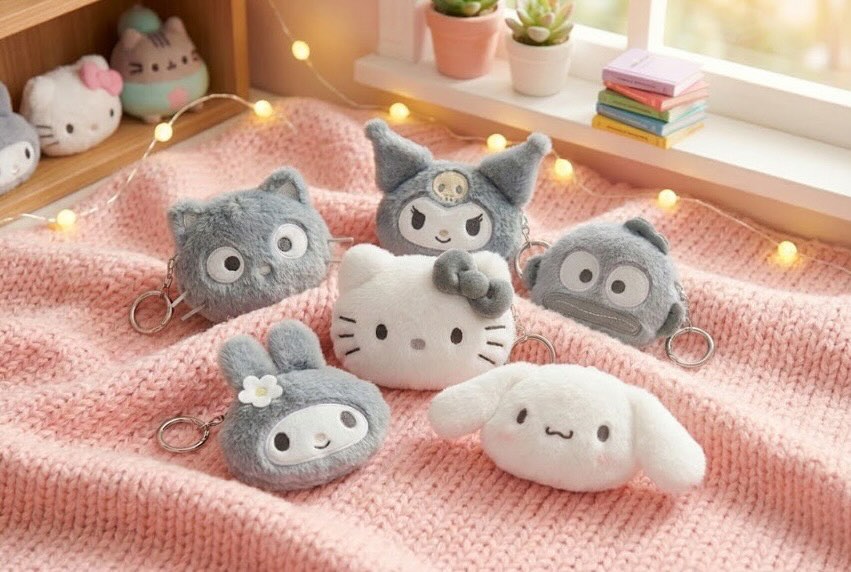 【三麗鷗家族】灰色毛絨系列耳機包 迷你零錢包正版韓國限定款