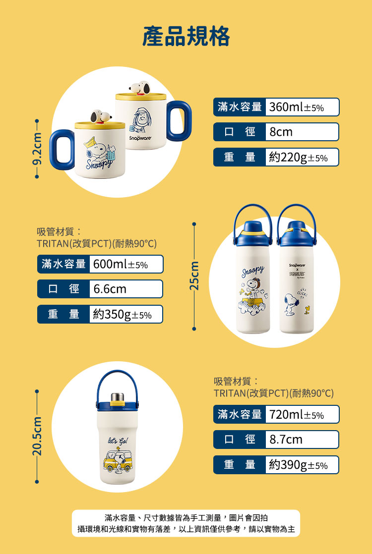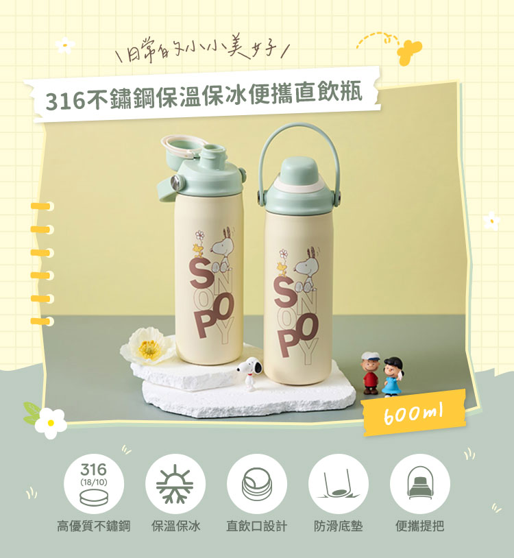 尺 寸:底徑7.5x高25cm口 徑:6.6cm容 量:滿水容量約600ml、有效容量560ml±5%重 量:約350g±5%材 質:瓶身/(內)SUS316高優質不鏽鋼 (外)SUS304優質不鏽鋼 上蓋/聚丙烯PP(耐熱120℃) 提把/TPU(耐熱100℃) 吸管/TRITAN(改質PCT)(耐熱90℃) 止水圈/耐冷熱矽膠(耐熱120℃)