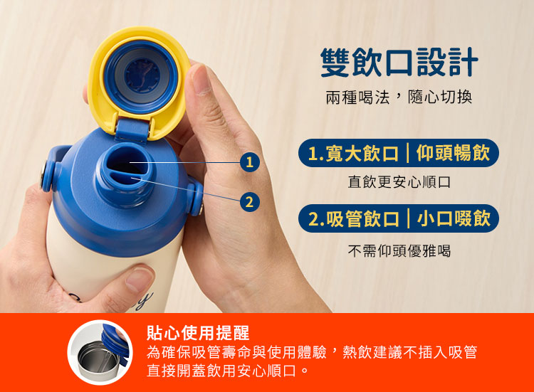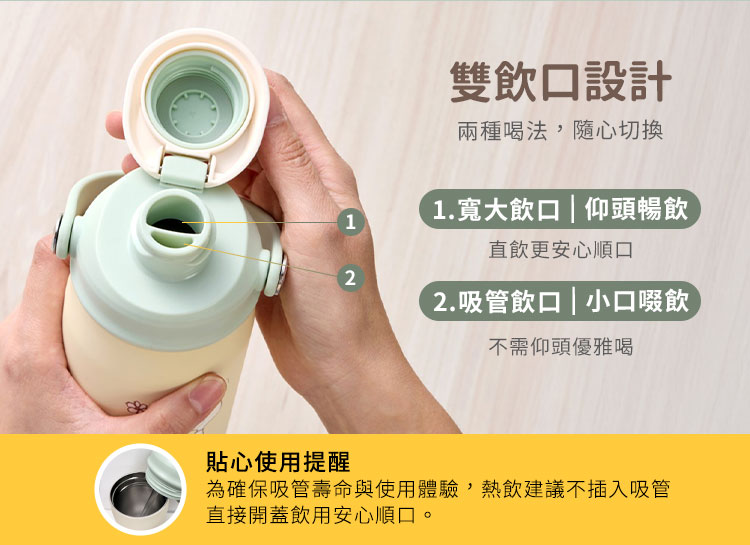 醫療級不鏽鋼耐酸鹼,安心無慮雙層抽真空,長效保溫保冷旋蓋式彈跳上蓋,輕鬆飲水雙飲設計,內置可拆式吸管,小口吸管喝水,大口可暢飲便攜式手把,簡單帶著走靜音防滑底套,保護杯底更耐磨損