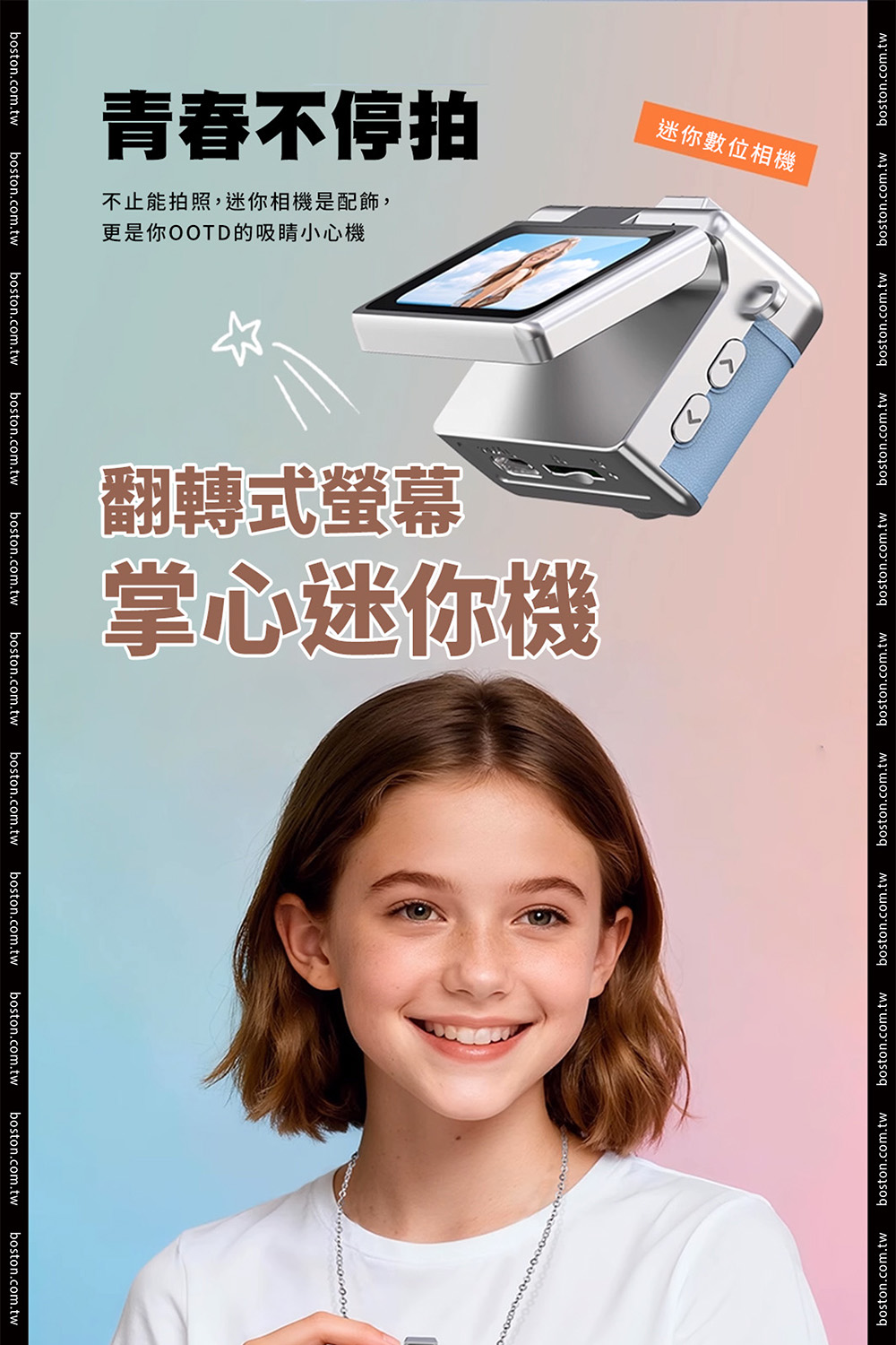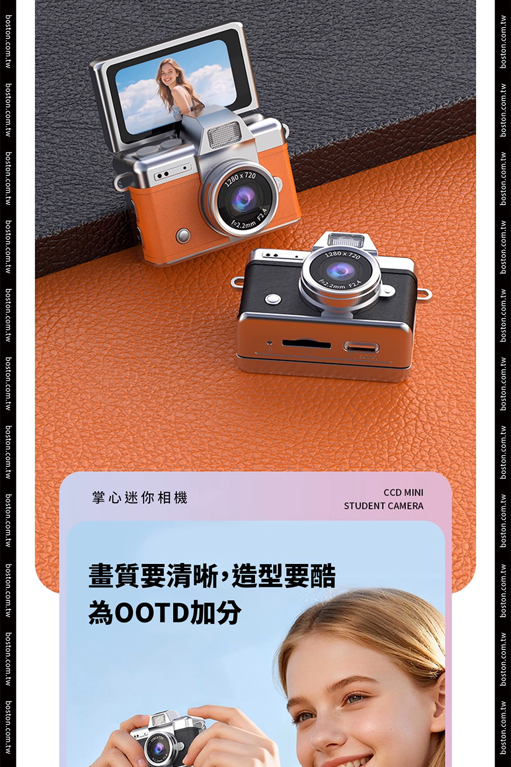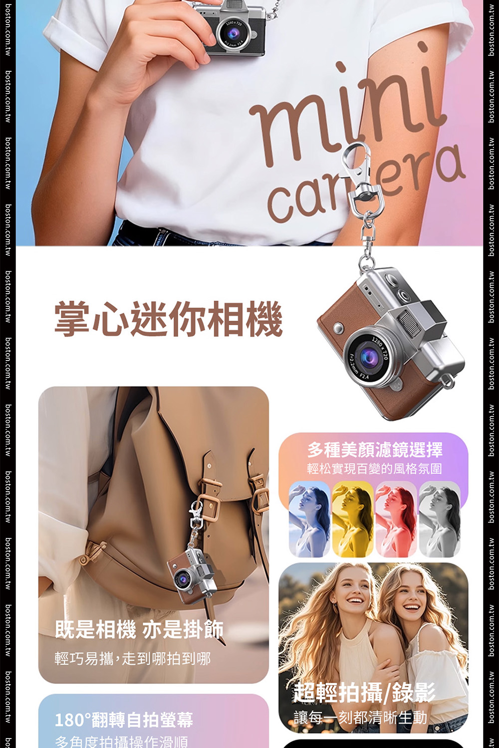 【商品規格】• 顯示螢幕:1.47吋高清顯示螢幕• 像素:720P• 電池:200mAh• 分辨率:720P• 影片格式:AVI• 充電時間:約1.5-2小時• 續航時間:約2小時• 儲存容量:支援64G• 拍照模式電流:230mA• 開機模式電流:200mA• 攝影模式電流:240mA• 關機模式電流:23µA• 螢幕休息充電模式電流:300mA• 電壓:3.7v• 尺寸:4.4 * 2.5 * 2.7cm• 材質:ABS+五金