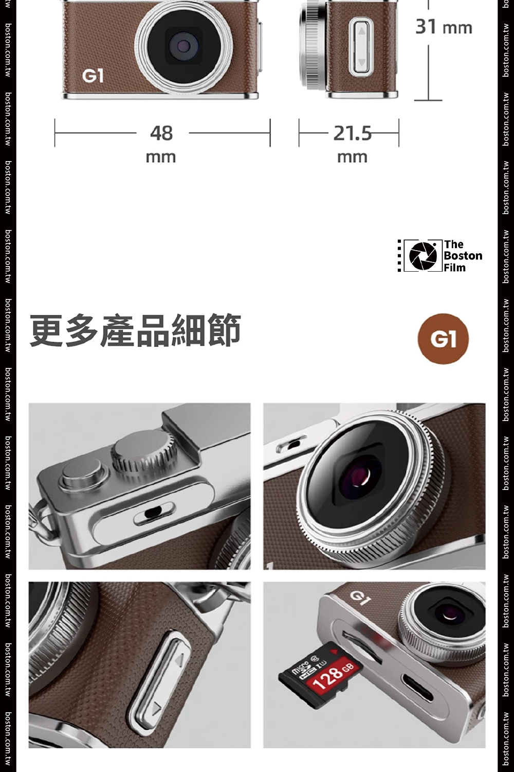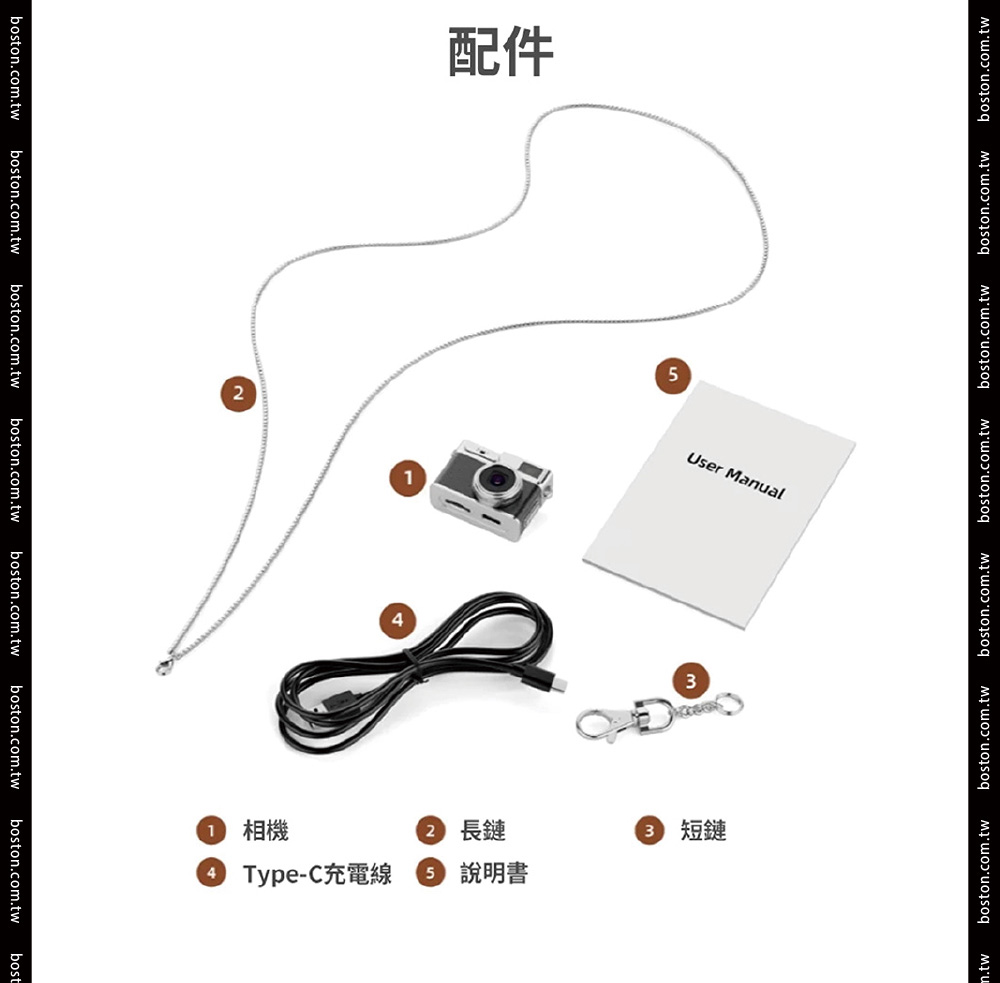 【商品規格】• 顯示螢幕:0.96寸TFT LCD / 解析度80*160• 鏡頭:高清130度廣角鏡頭• 最高拍照解析度:AVI 1920*1080;1280*720• 錄音位速:WAV (512KBPS)• 輔助補光功能:支援紅外線燈 / 白熾燈• 補光切換方式:手動調節• 麥克風:全指向內建電容式麥克風• 電池:150mAh / 3.7V 鋰聚合物電池• 錄影可使用時間:40-50分鐘• 錄音連續使用時間:錄音約1小時• 最長拍照可用時間:約1.5小時(1080p、30fps 高畫質影片)• 連接方式:高速Type-C接口• 輸入電壓:Type-C / DC5V-1A• 儲存容量:支援16G/32G/64G/128G記憶卡• 語言:繁體中文、簡體中文、英文、德文、日文等12種語言• 尺寸:4.79*3.09*2.15cm