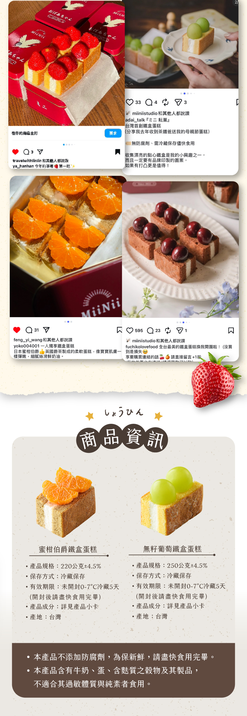 ・本商品無法提供換貨服務,如需其他商品請您重新購買。・甜點出貨前均經嚴格品質管制確保甜點完整性,如到貨後發現因作業程序錯誤,導致寄送商品與訂購數量、品項不符,或訂購之商品包裝內容物有瑕疵 ( 物流運送過程造成嚴重毀損及失溫 ),請於收到商品的24小時內拍照或錄影,並立即與官方LINE@miiniistudio 客服人員聯繫。・在未完成退貨程序前,請務必保留包裹收件時的原樣,避免影響貨故判定結果。・即使品質的控管及保護措施完善,甜點冷藏宅配仍有一定的風險,車體運送途中可能造成水果與蛋糕輕微位移、或些許裝飾掉落,恕不在貨故申請範圍內,訂購時請評估是否能承擔接受。